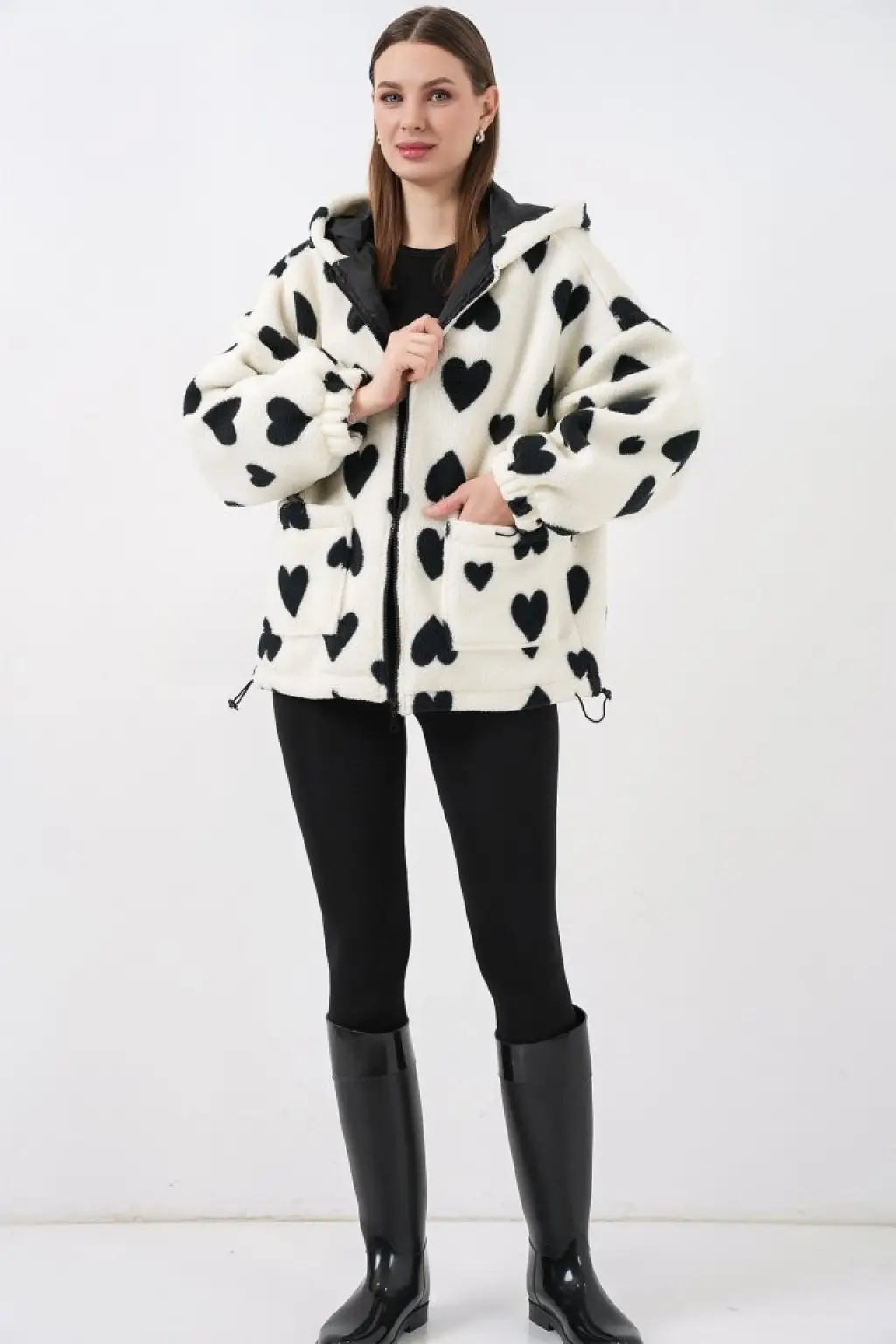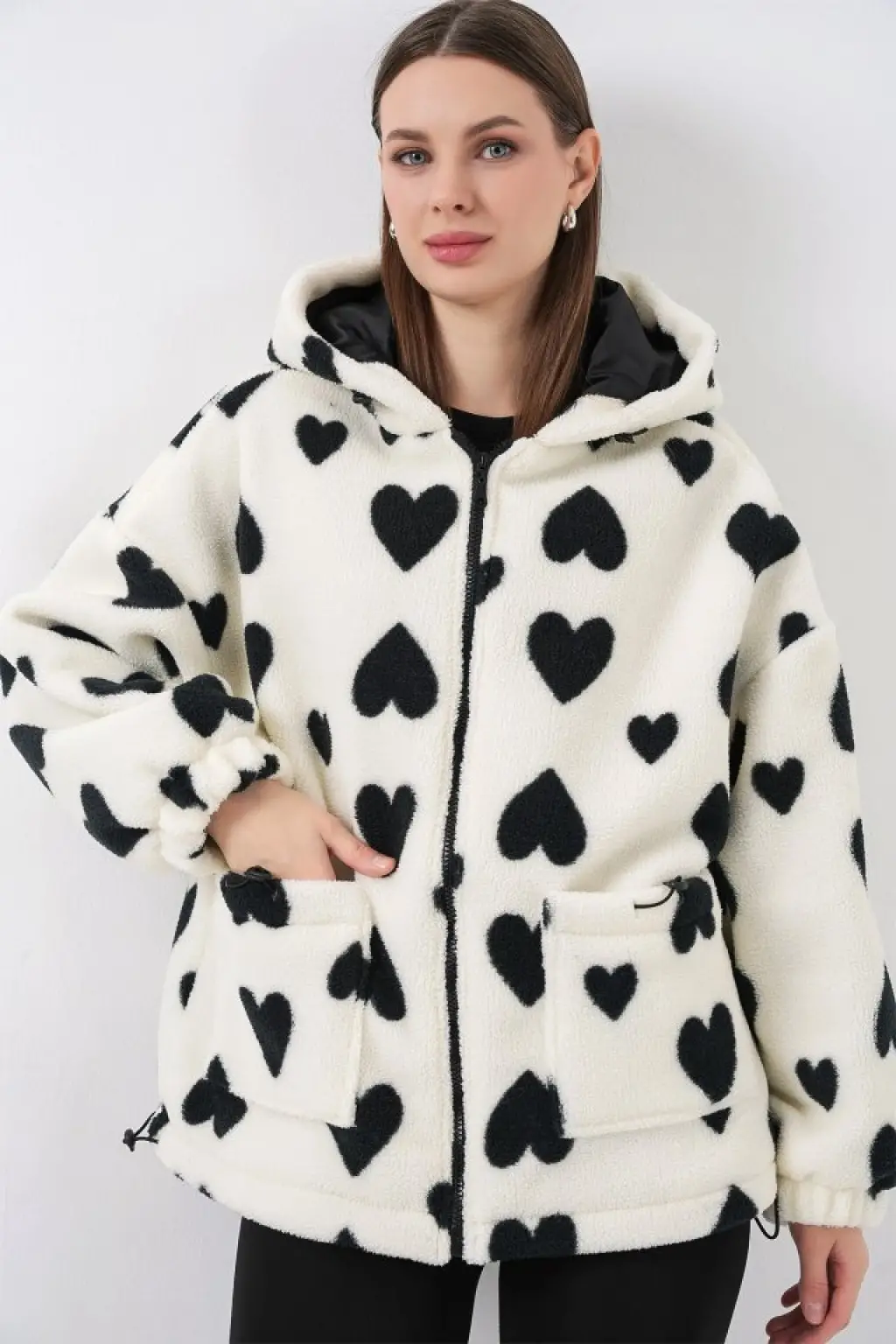 Kapüşonlu Peluş Ceket 5236 - Ekru