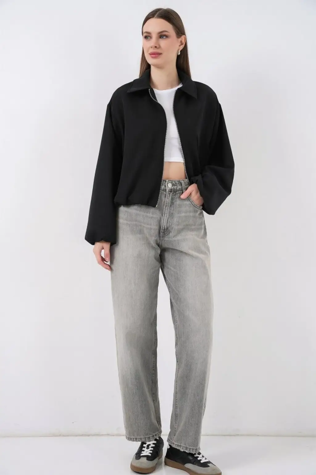 Oversize Fermuarlı Ceket 0735 - Siyah