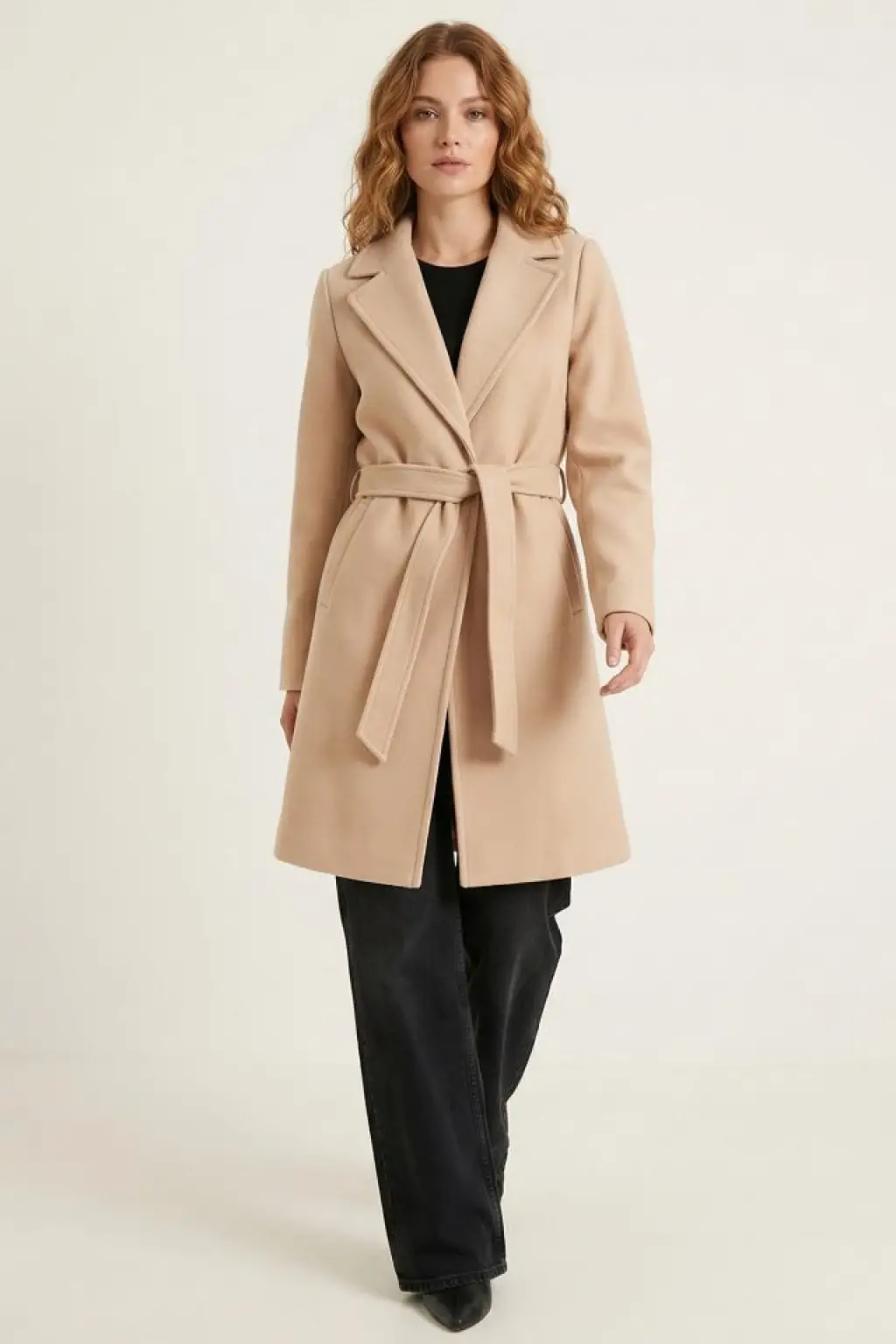 Zarif Kuşaklı Kaban Bej