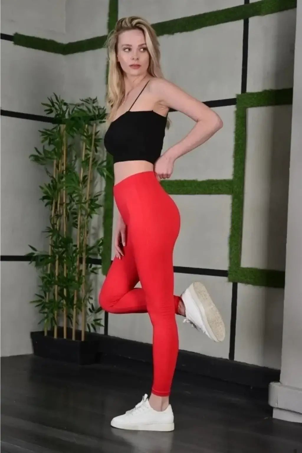 Full Likra Extra Toparlayıcı Yüksek Bel Dar Kalıp Günlük Spor Tayt - Kırmızı