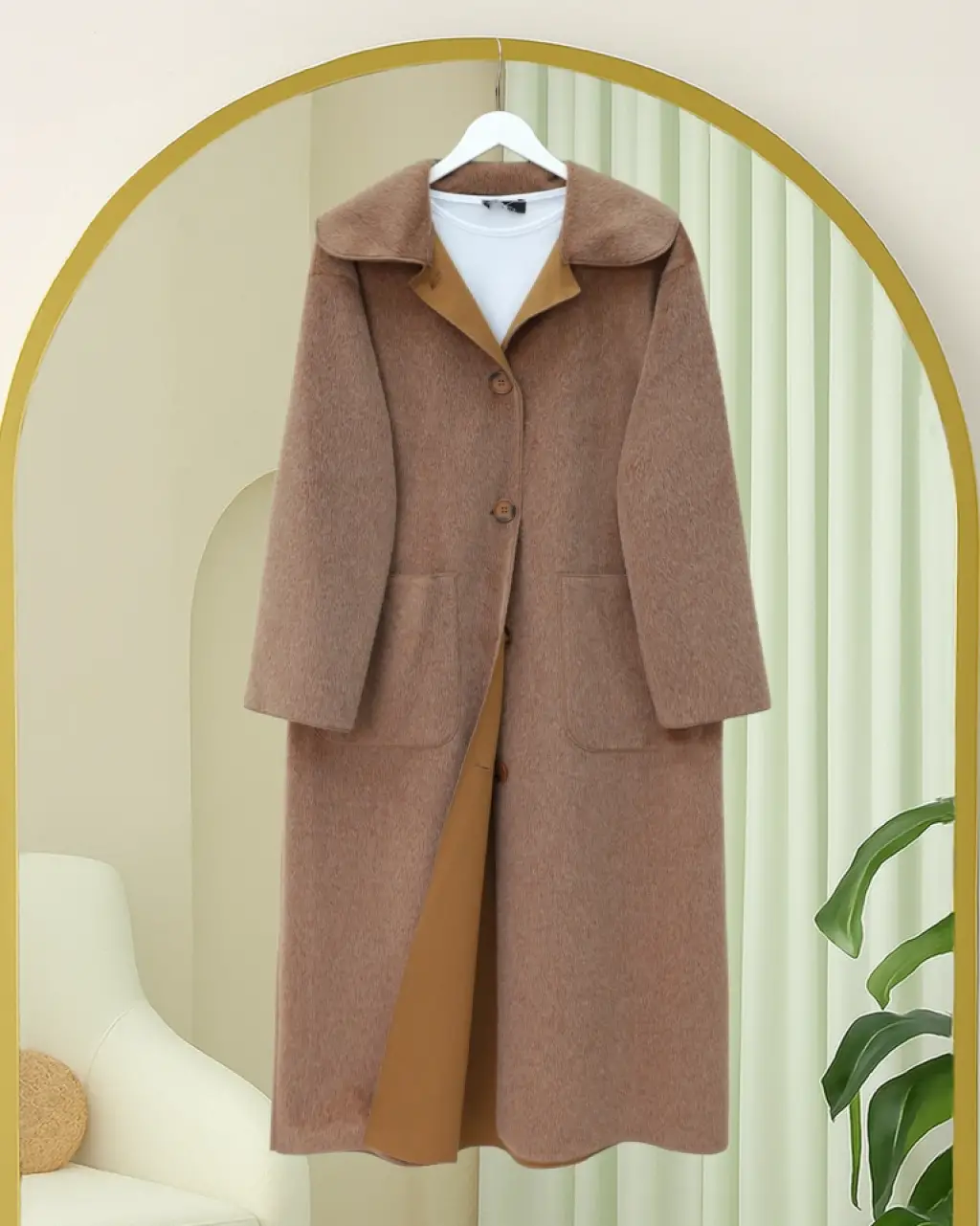 9085 Balık Sırtı Kaşe Kaban - Camel