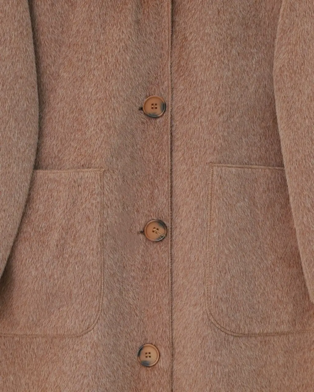 Çift Cepli Önü Düğmeli Astarlı Buklet Kaban -Bej