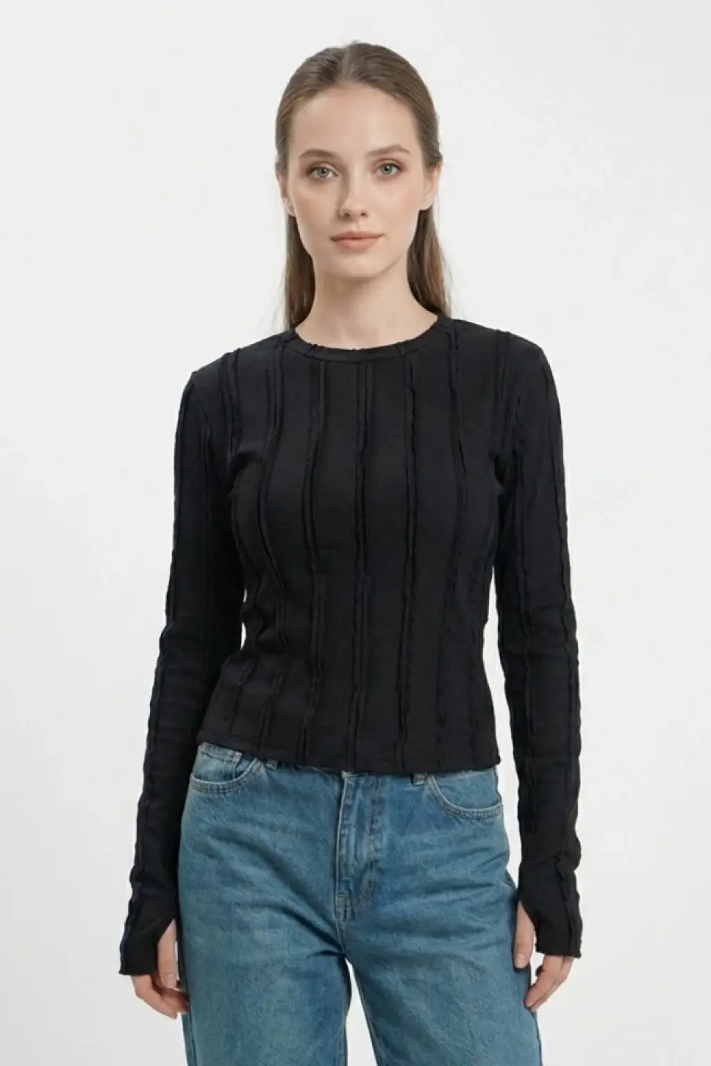 Dokulu Örme Bluz 980 - Siyah