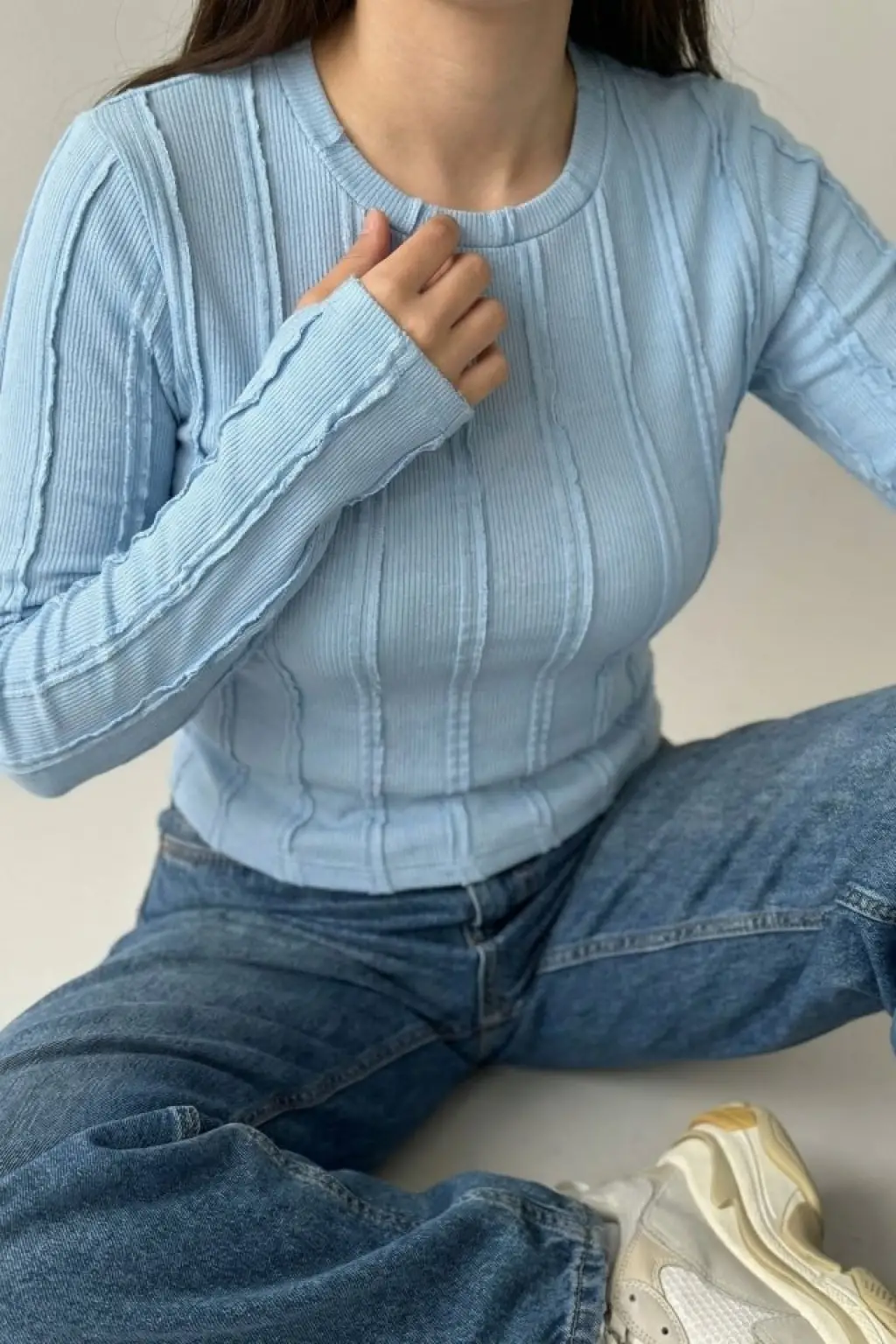 Dokulu Örme Bluz 980 - Mavi