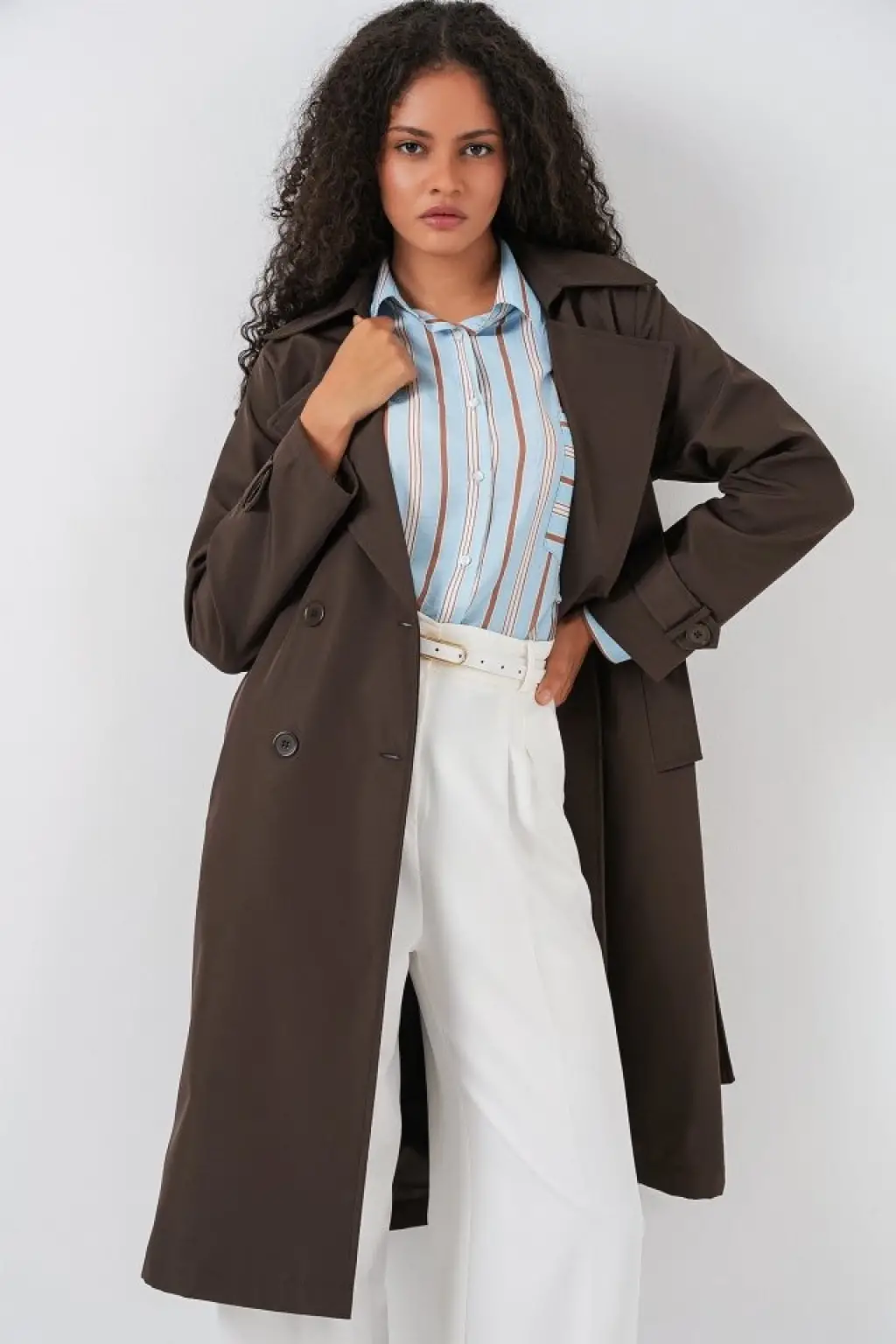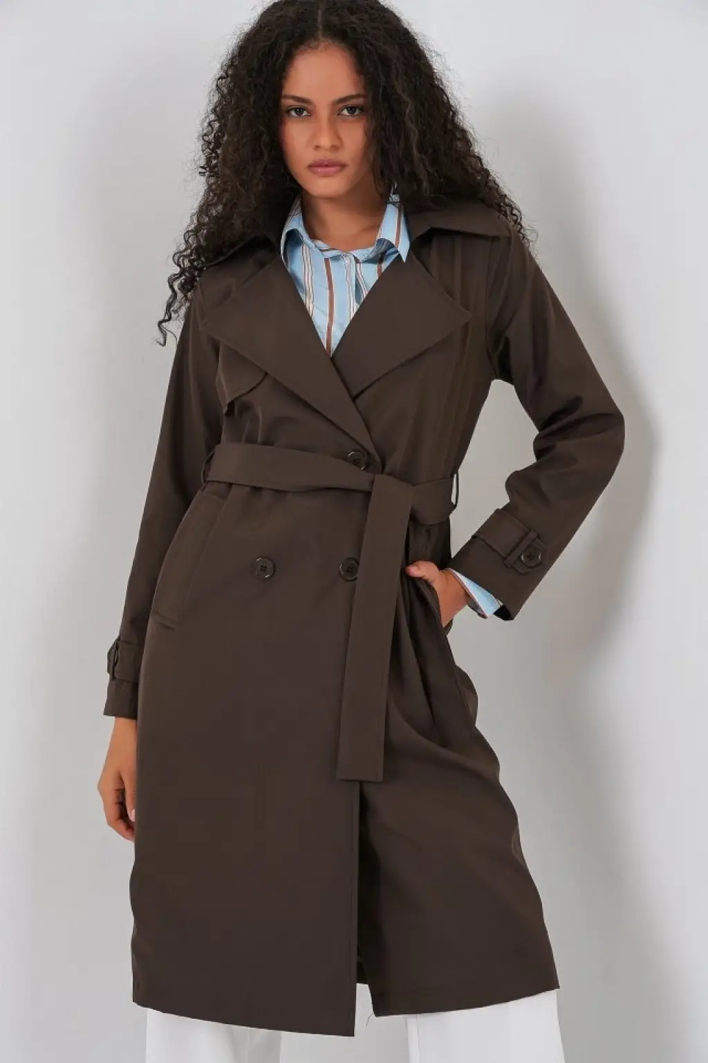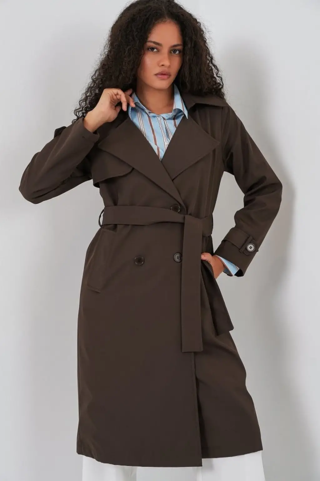 5918 Kruvaze Yaka Trençkot - C. Kahverengi