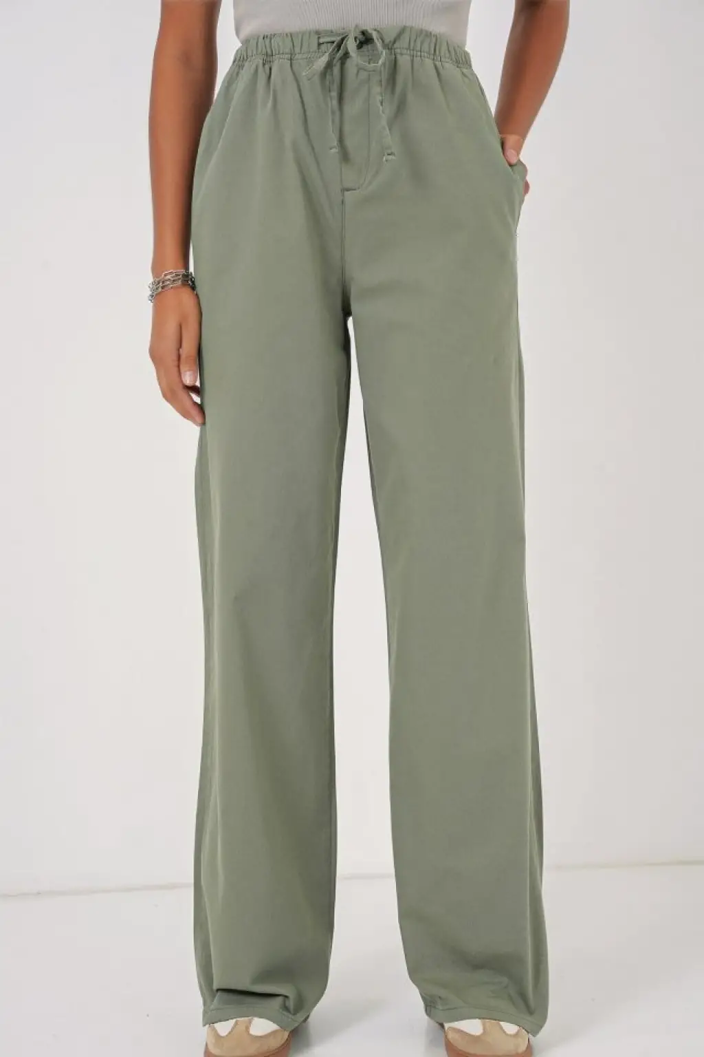 6690 Bol Paça Yüksek Bel Pantolon - Çağla