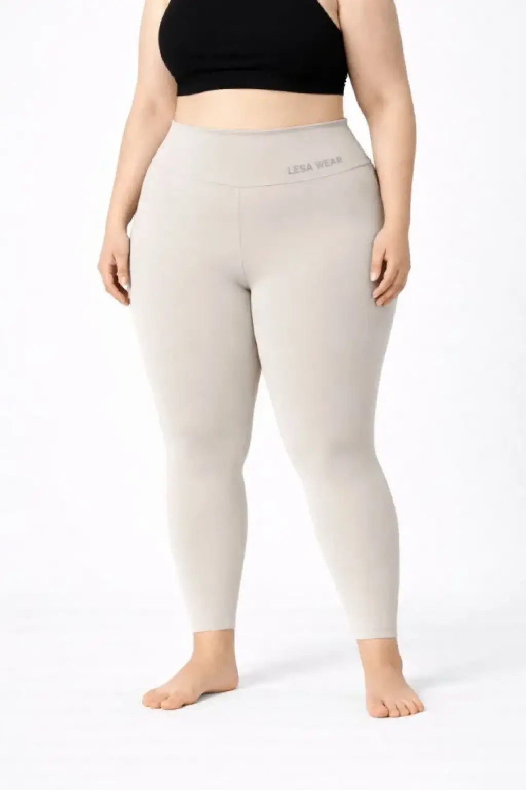 Yüksek Bel Toparlayıcı Likralı Dalgıç Spor Tayt Esnek Battal Büyük Beden - Taş