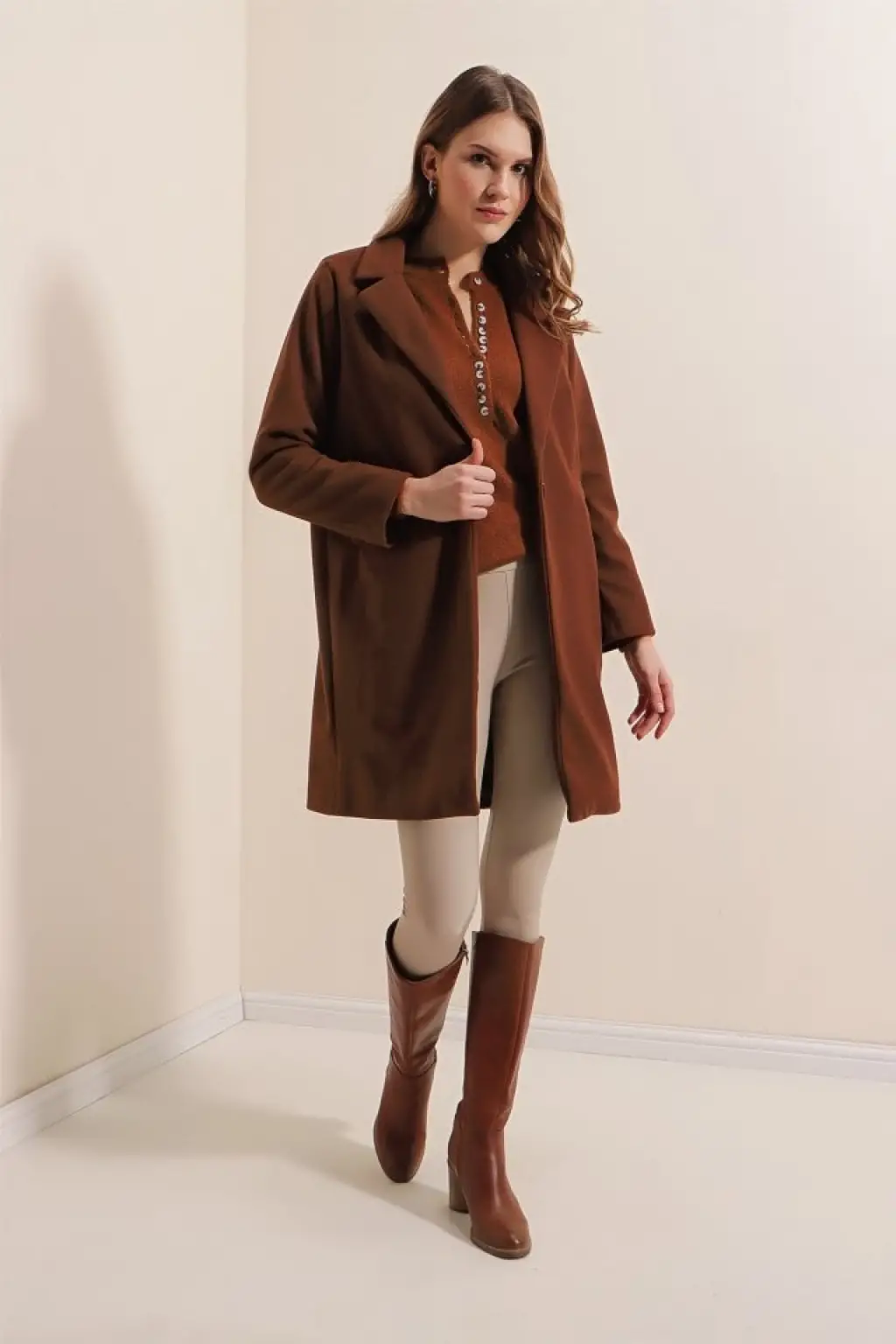 9085 Balık Sırtı Kaşe Kaban - Camel