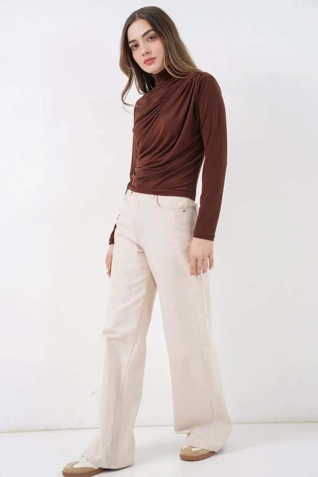 925 Büzgü Detaylı Sandy Bluz - A.Kahve