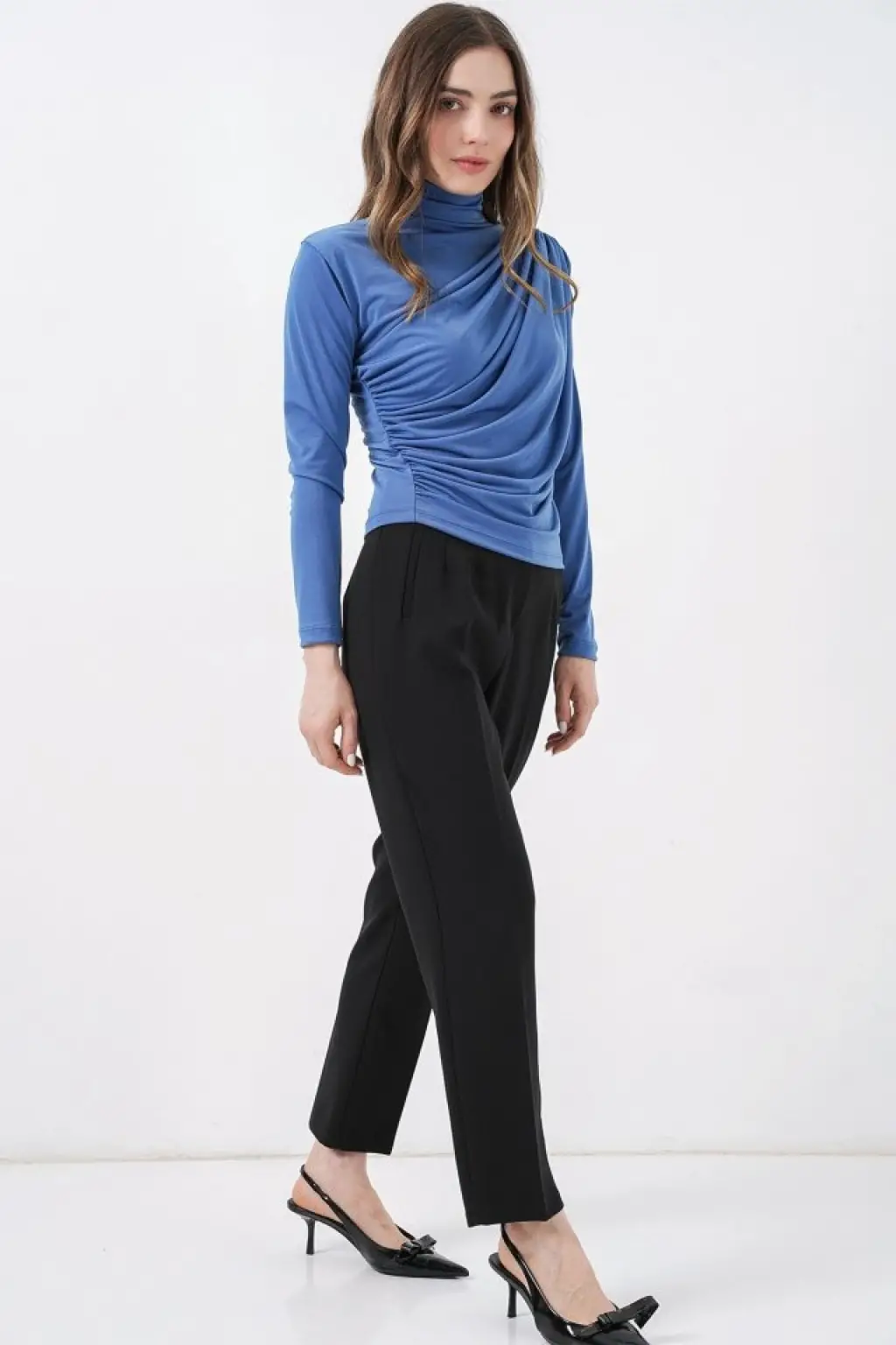 925 Büzgü Detaylı Sandy Bluz - İndigo