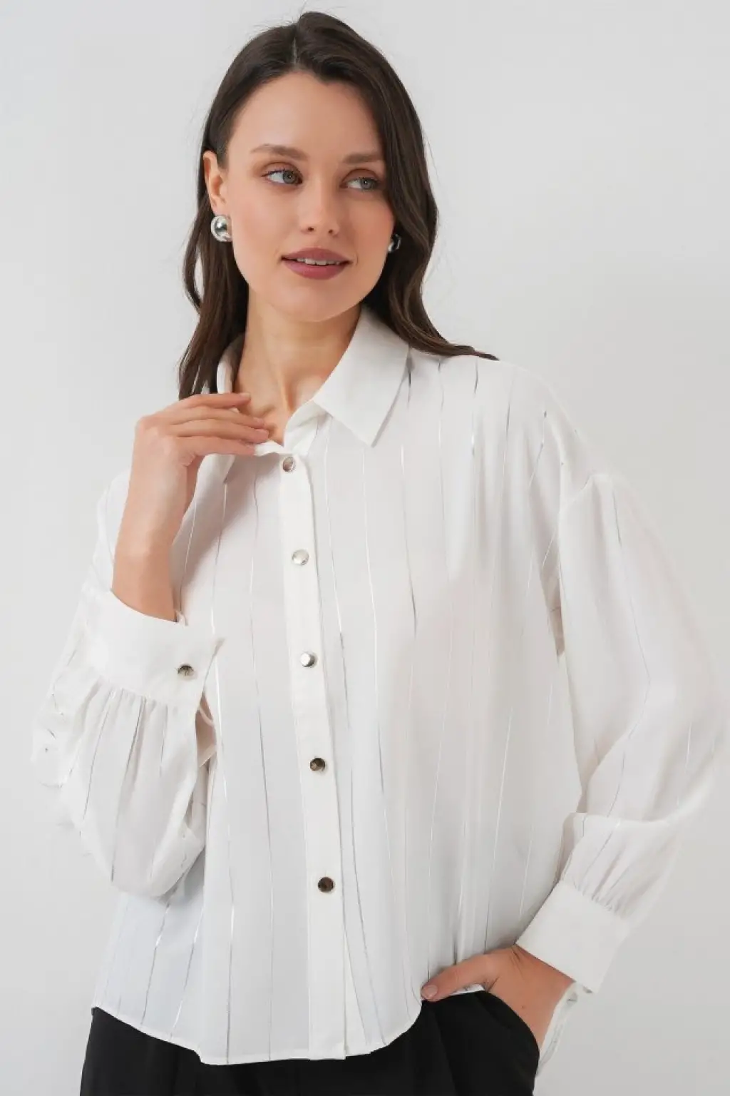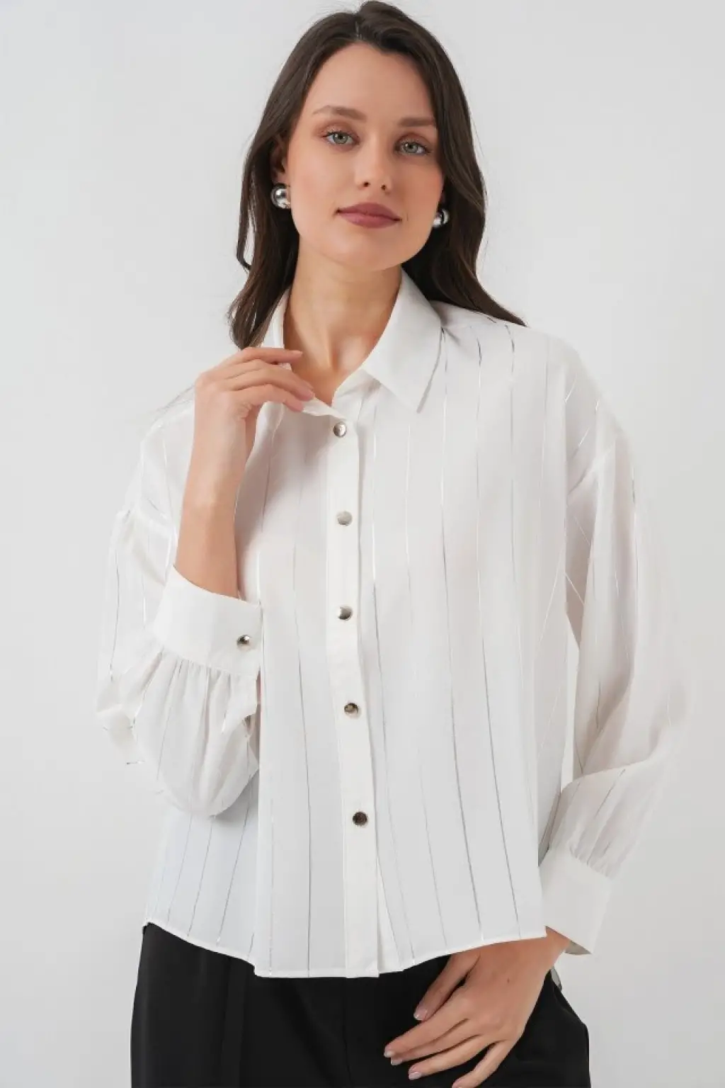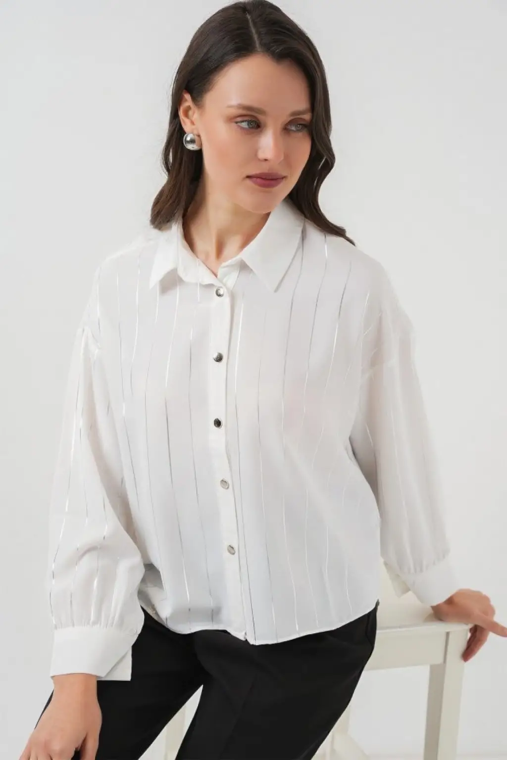 Beyaz Gümüş Çizgili Gömlek 5924