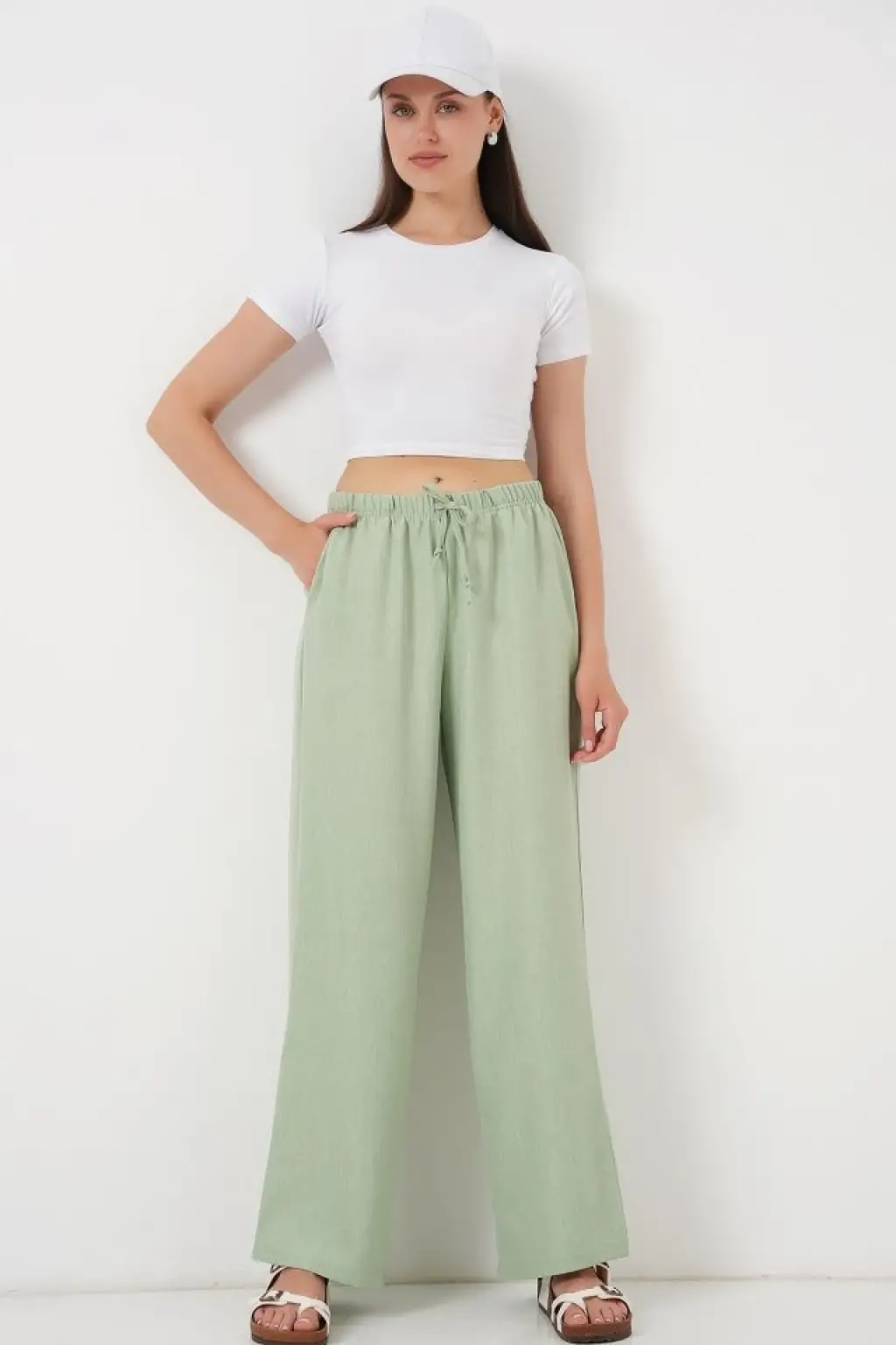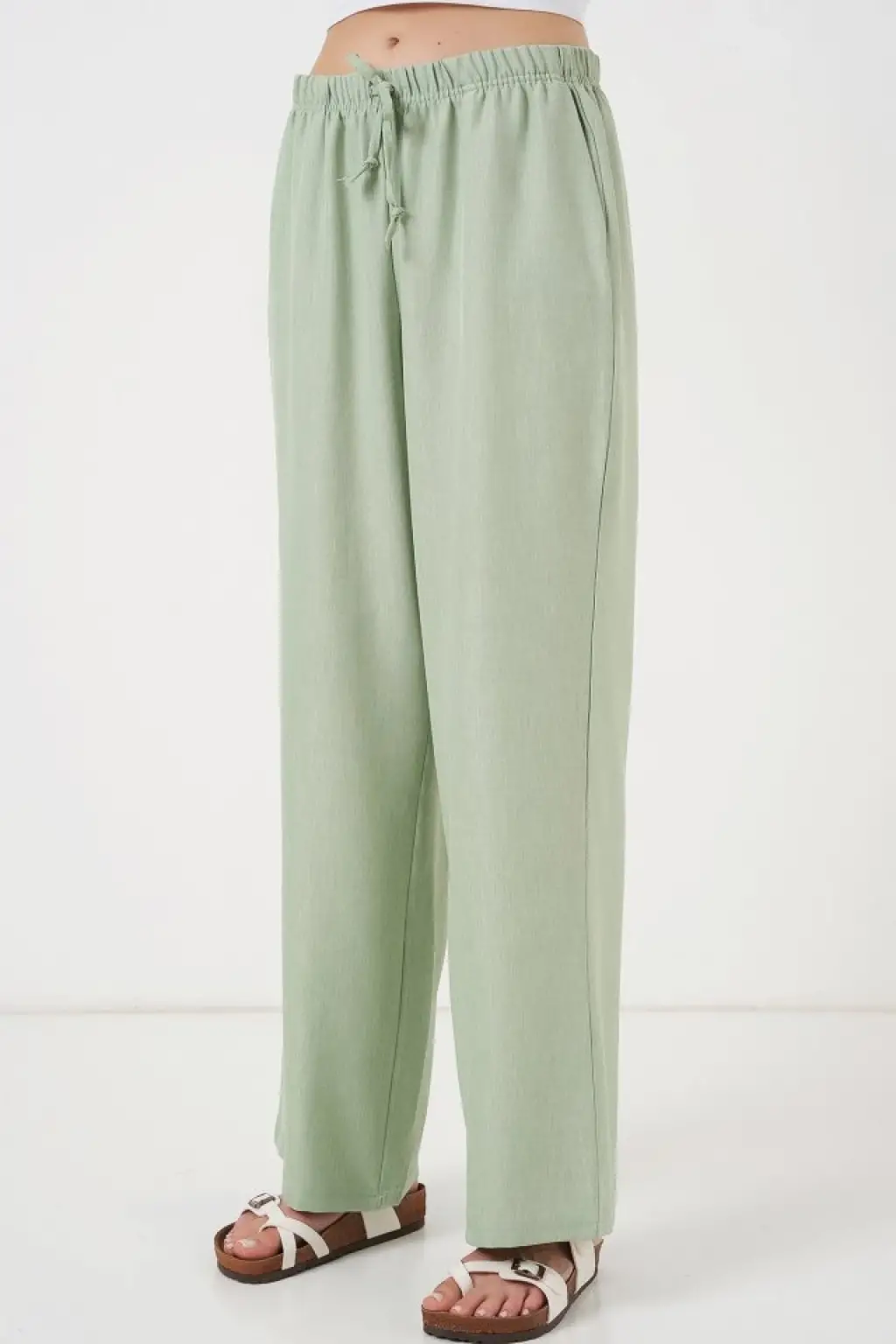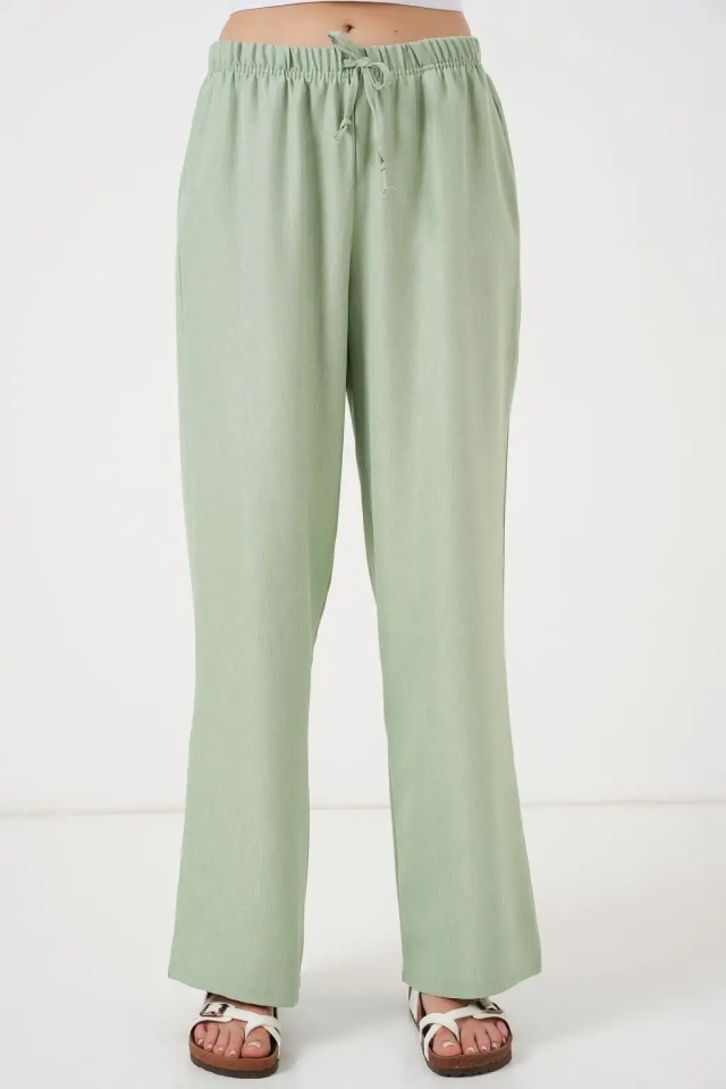 Geniş Paça Keten Pantolon 6735 - E.Yeşil