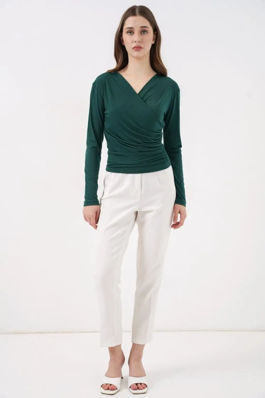 Kruvaze Yaka Kolsuz Bluz 966 - Çağla