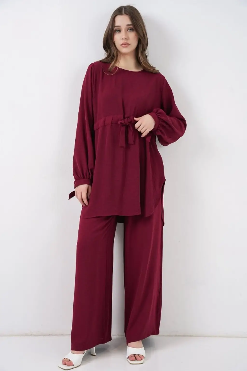Uzun Tunik Pantolon İkili Takım 6719 - Bordo