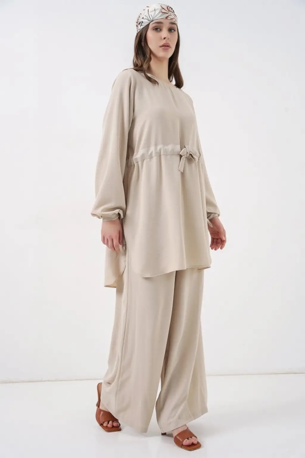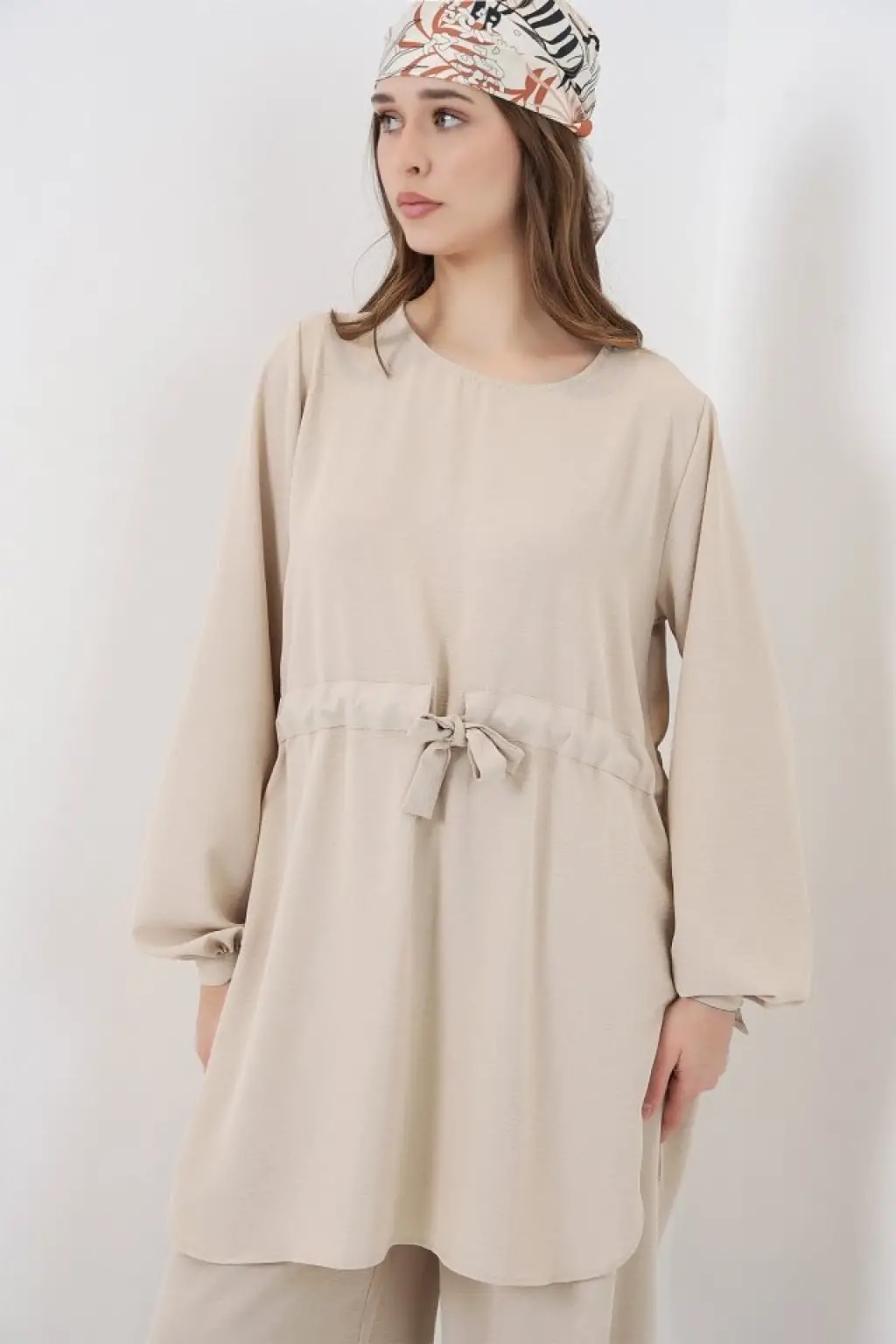 Uzun Tunik Pantolon İkili Takım 6719 - Krem