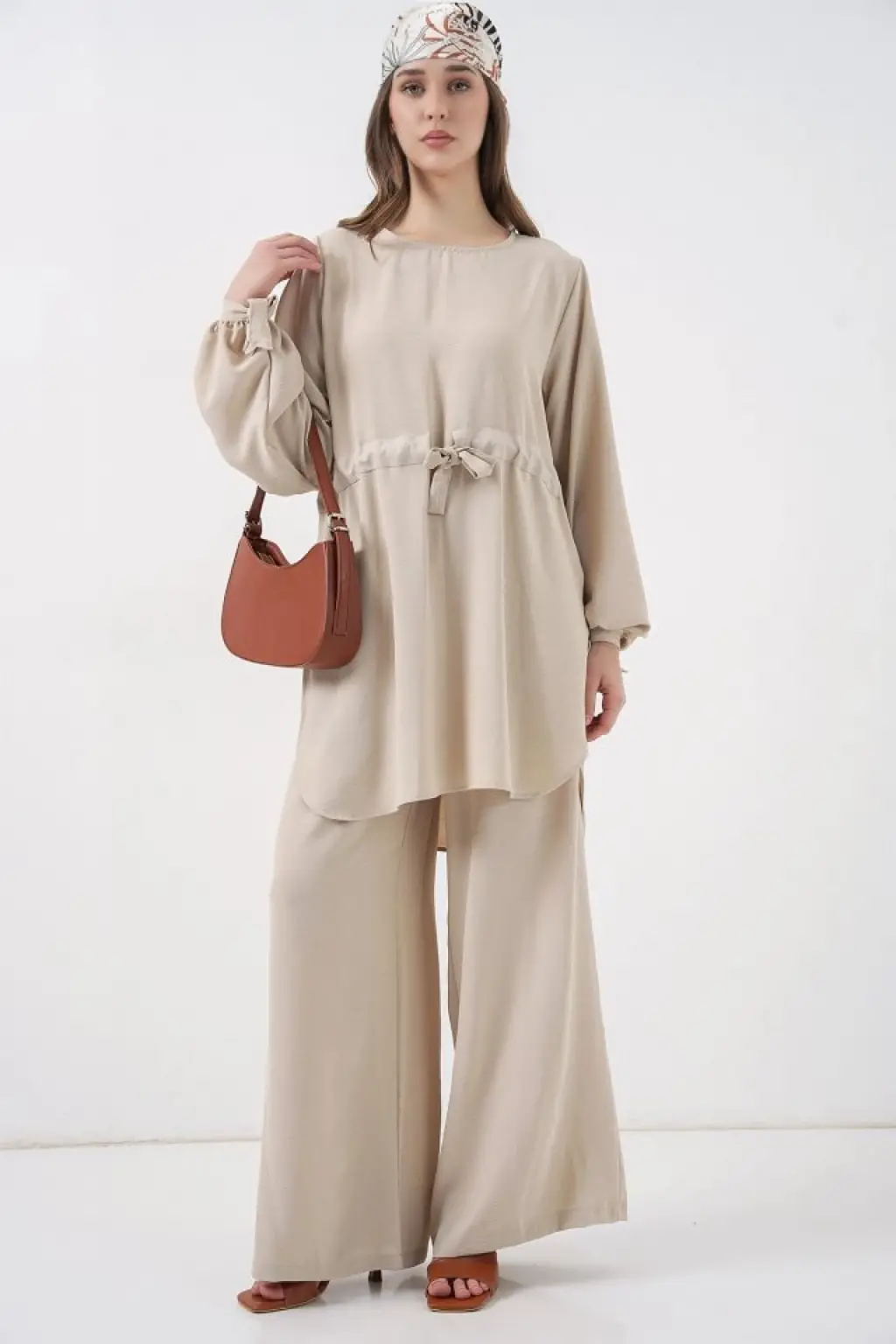 Bağcıklı Tunik Pantolon İkili Takım 6752 - Pudra