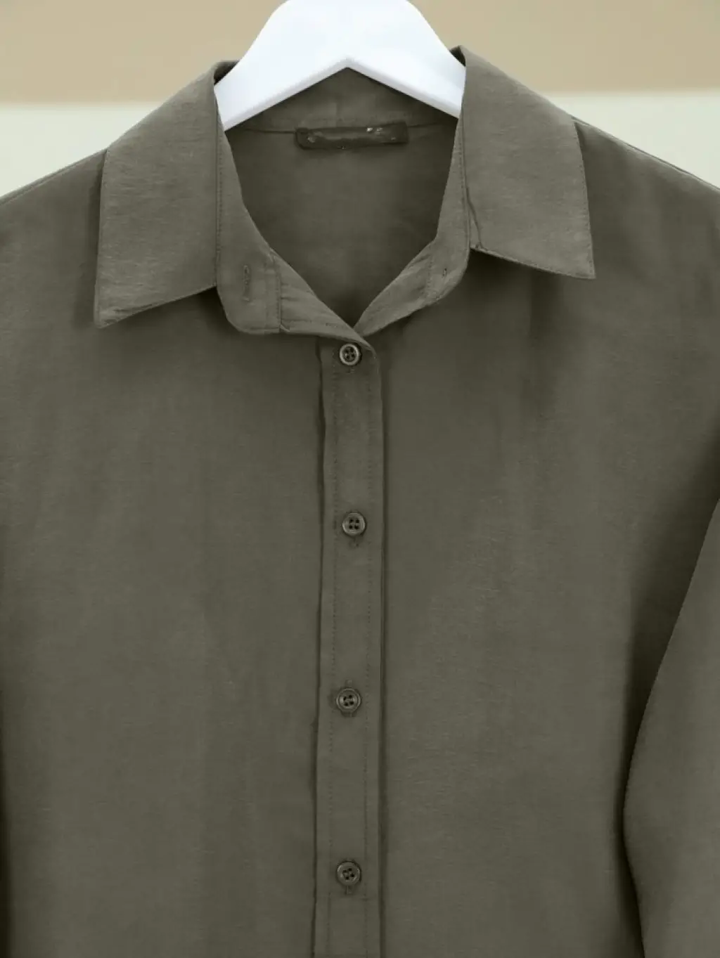 Oval Kesim Tensel Cupra Gömlek -Haki