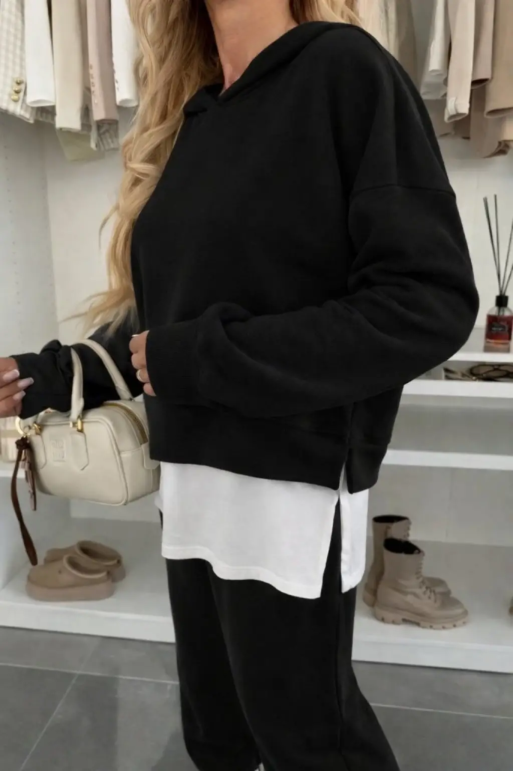 Kadın Uzun Kollu Kapşonlu Viskon Iki Iplik Bluz Ve Pantolon Ikili Takım