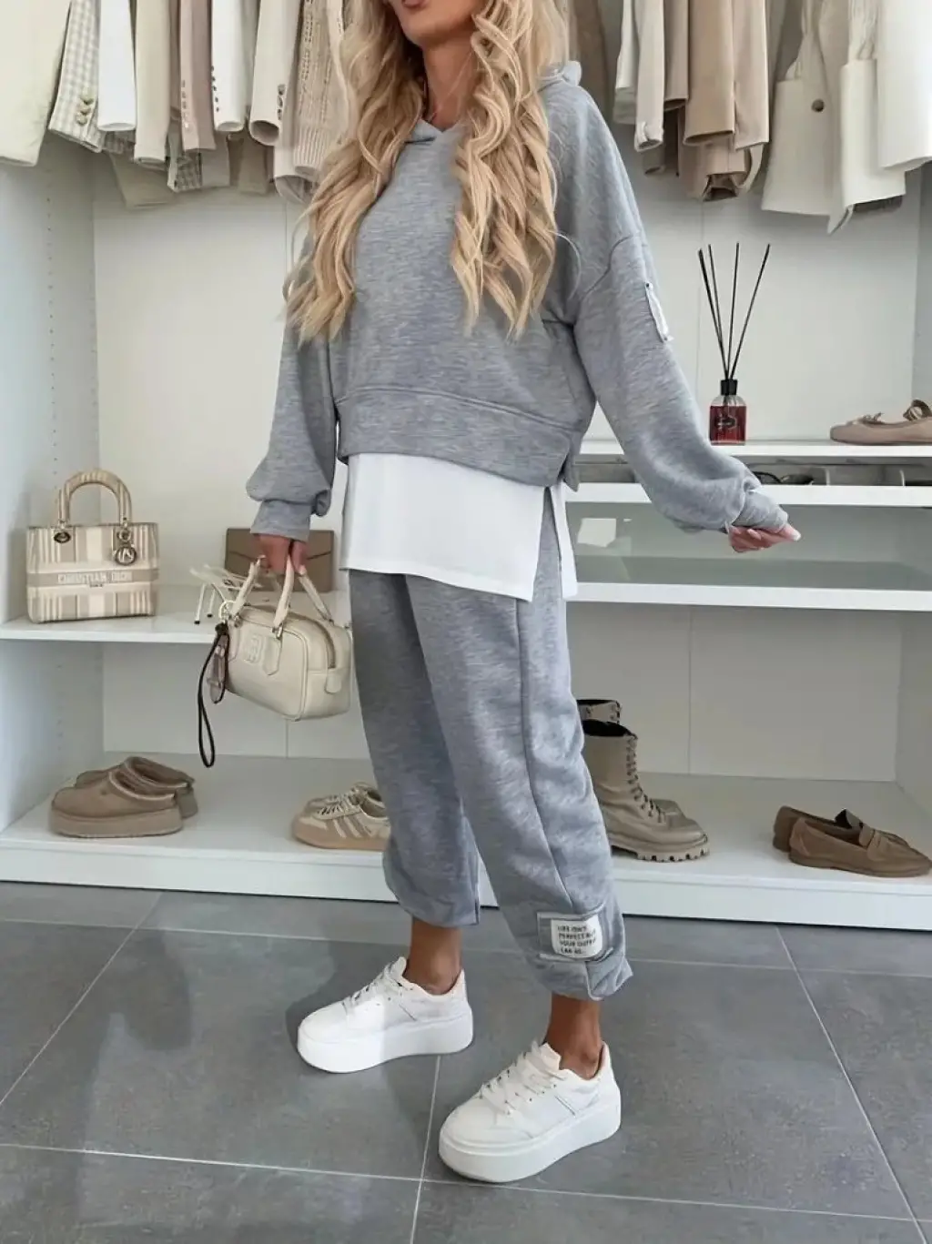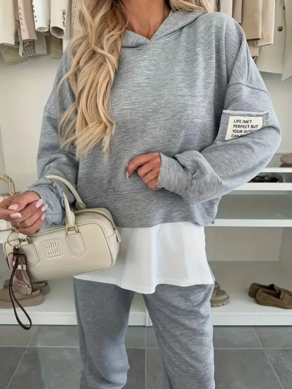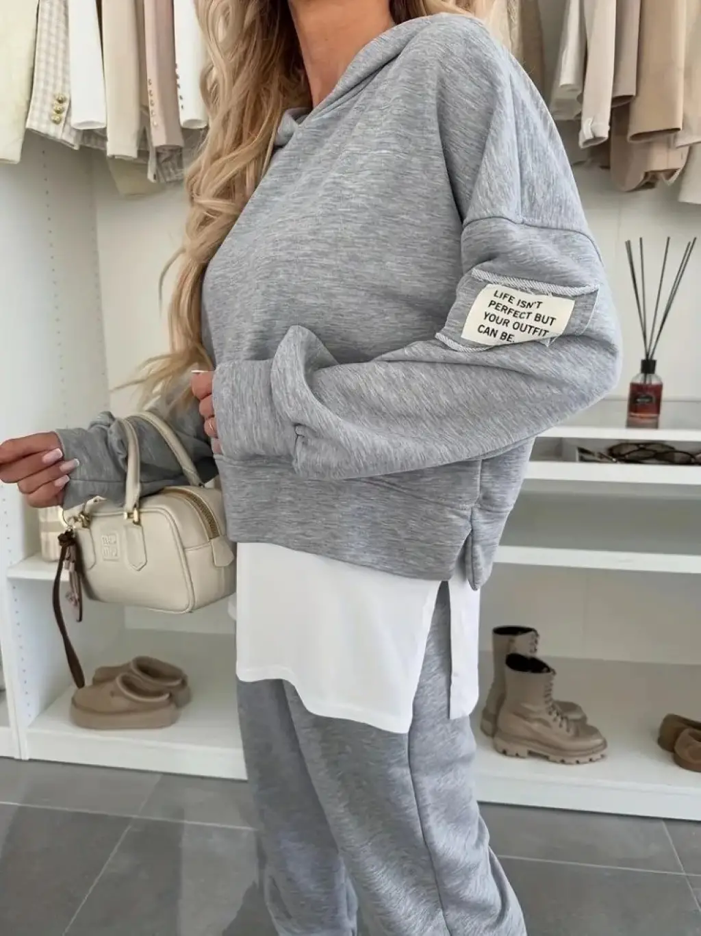 Kadın Kapşonlu Etek Ucu Detay Armalı Ters Dikiş Gorunumlu Ikili Takım