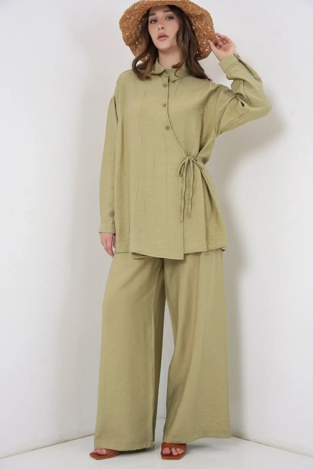 Bağcıklı Tunik Pantolon İkili Takım 6752 - E.Yeşil