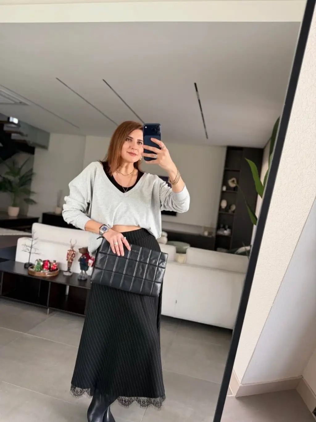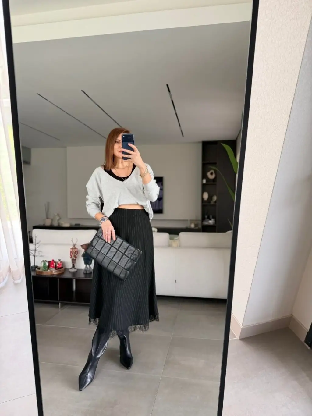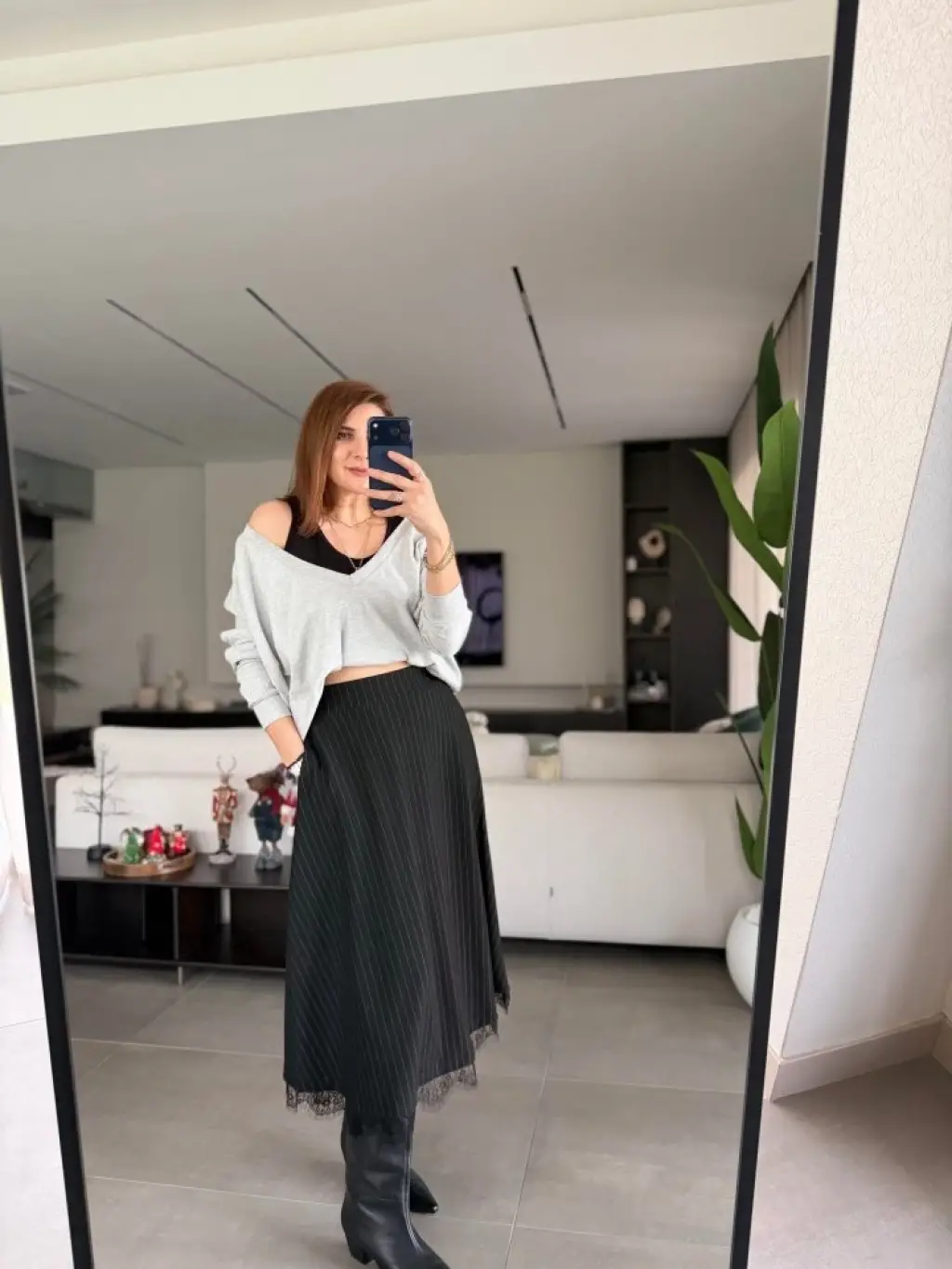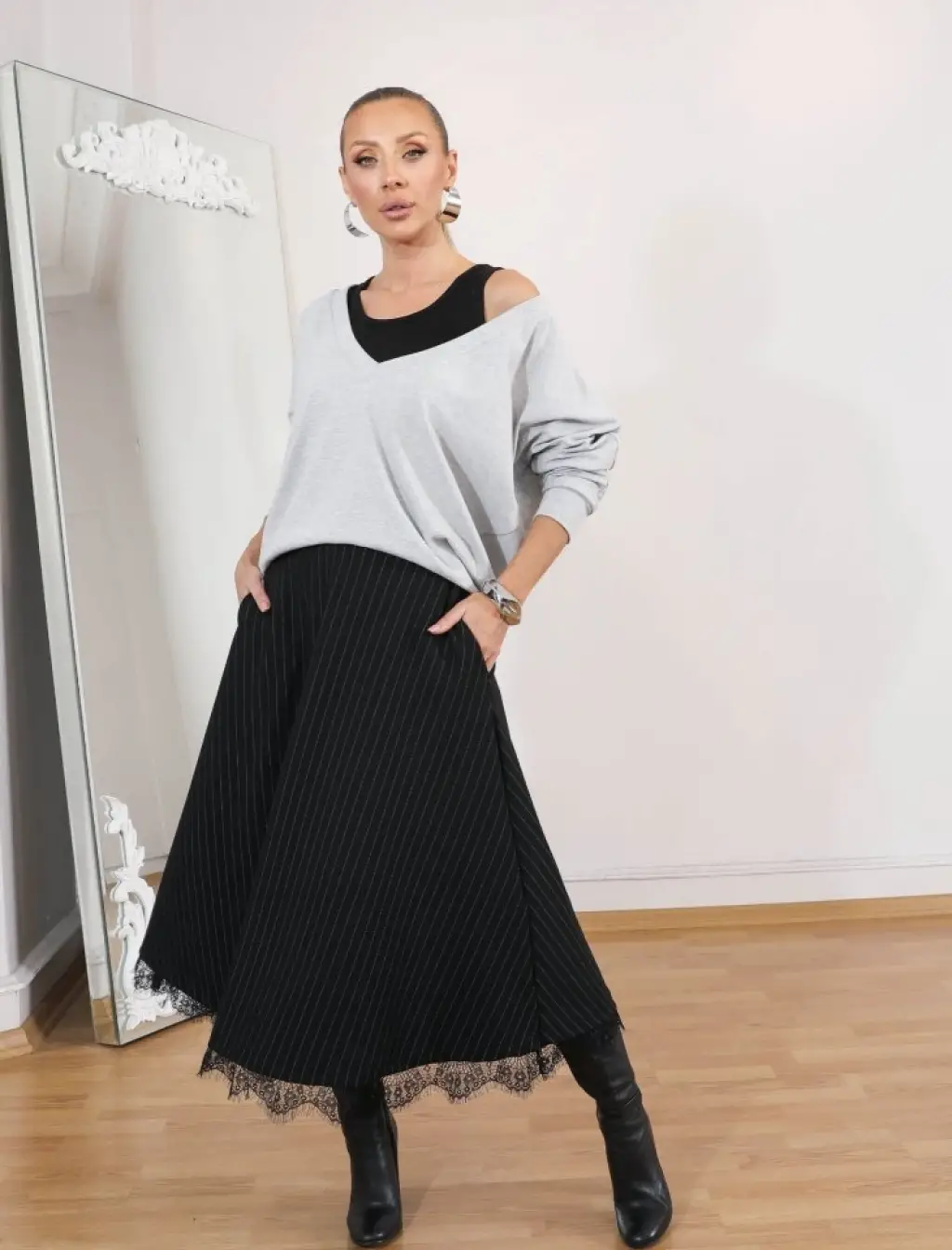Kadın Uzun Kollu Boğazlı Kazak Ve Yanı Yırtmaçlı Etek Akrilik Ikili Takım