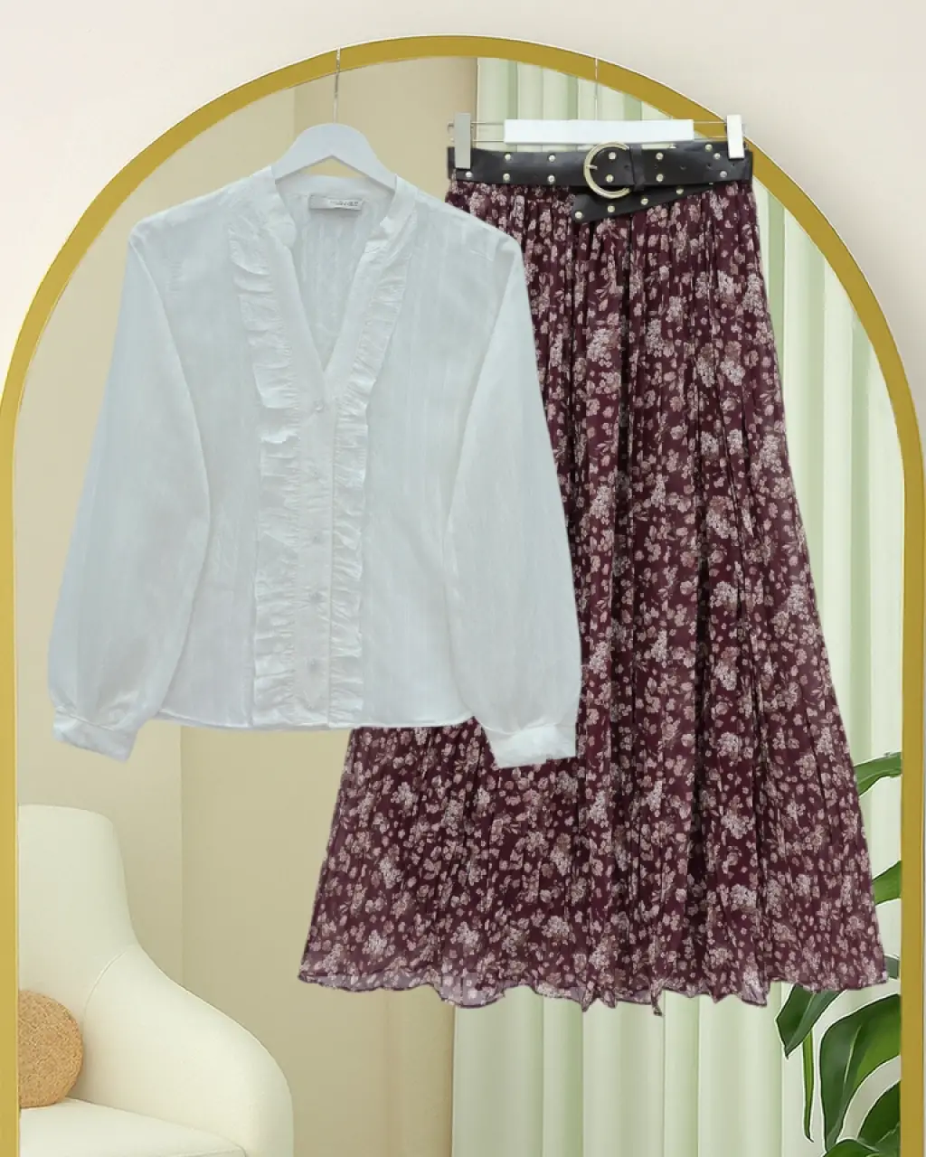 Fırfır Detaylı Düğmeli Kısa Gömlek -Bordo