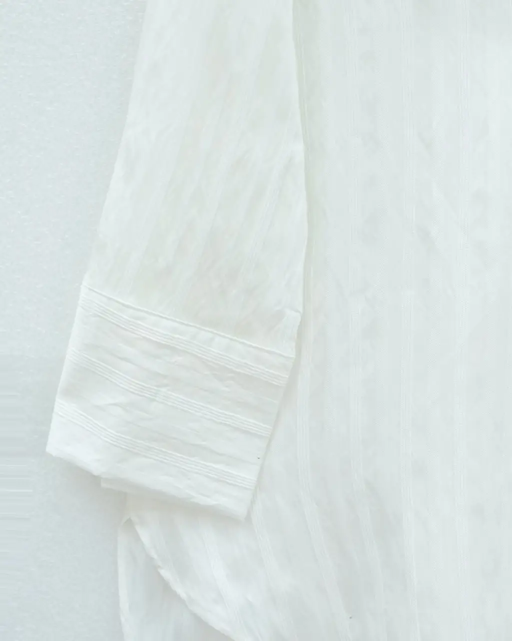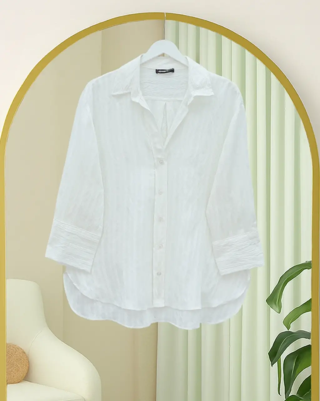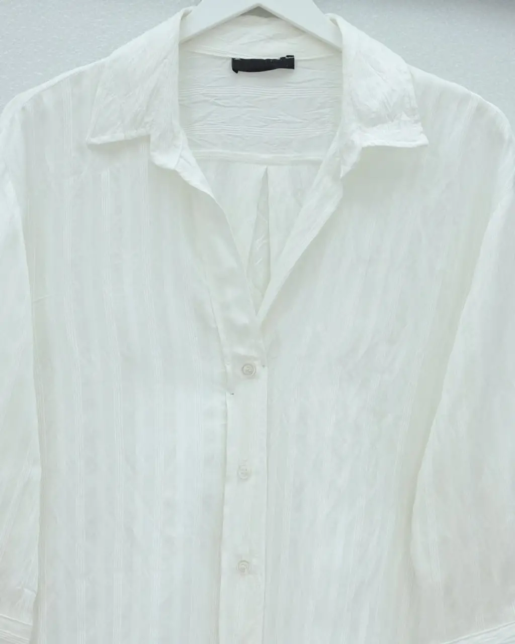 Çizgi Desen Oval Kesim Krinkıl Gömlek -Beyaz