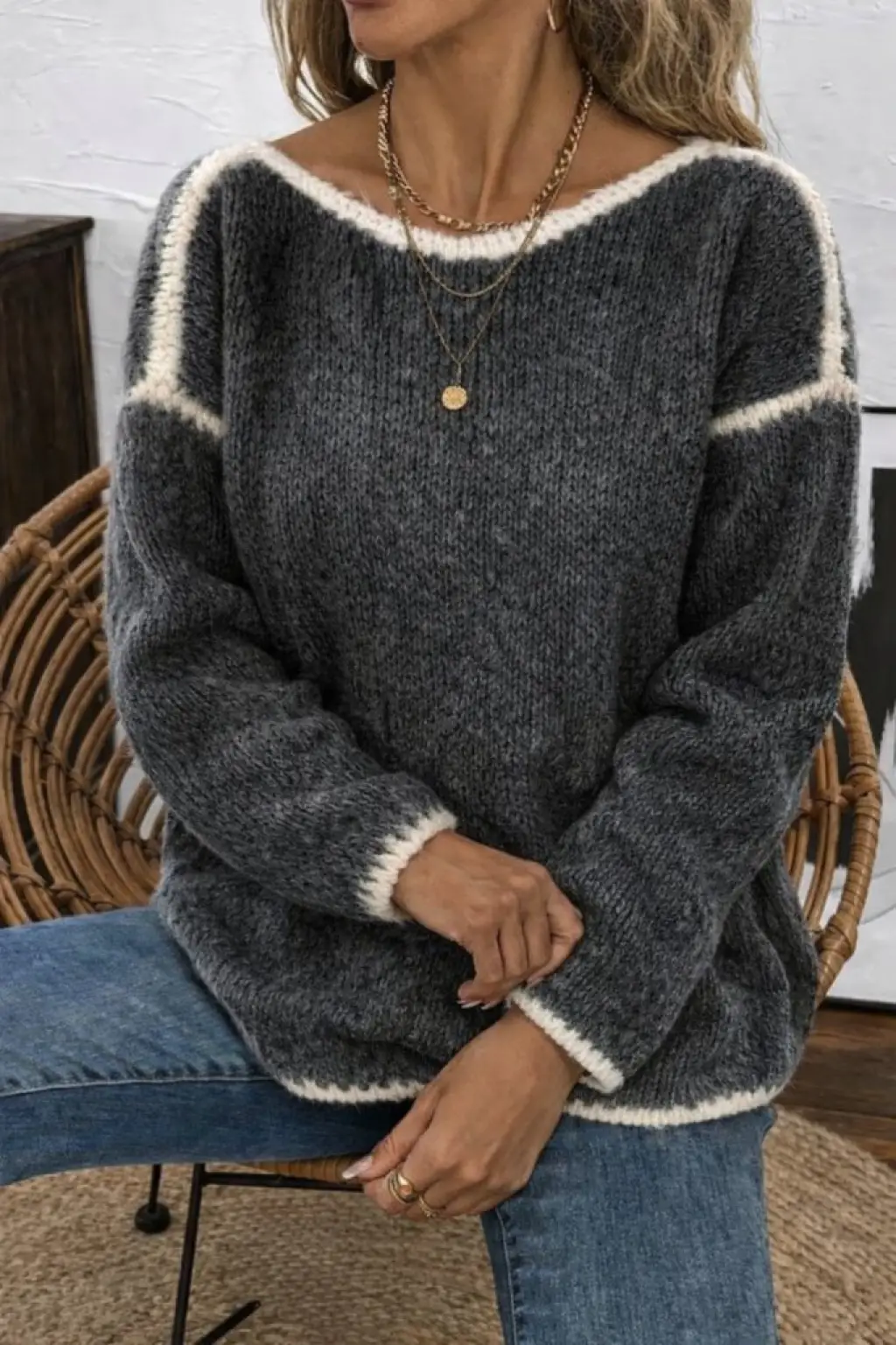 Kadın Uzun Kollu Kayık Yaka Triko Bluz