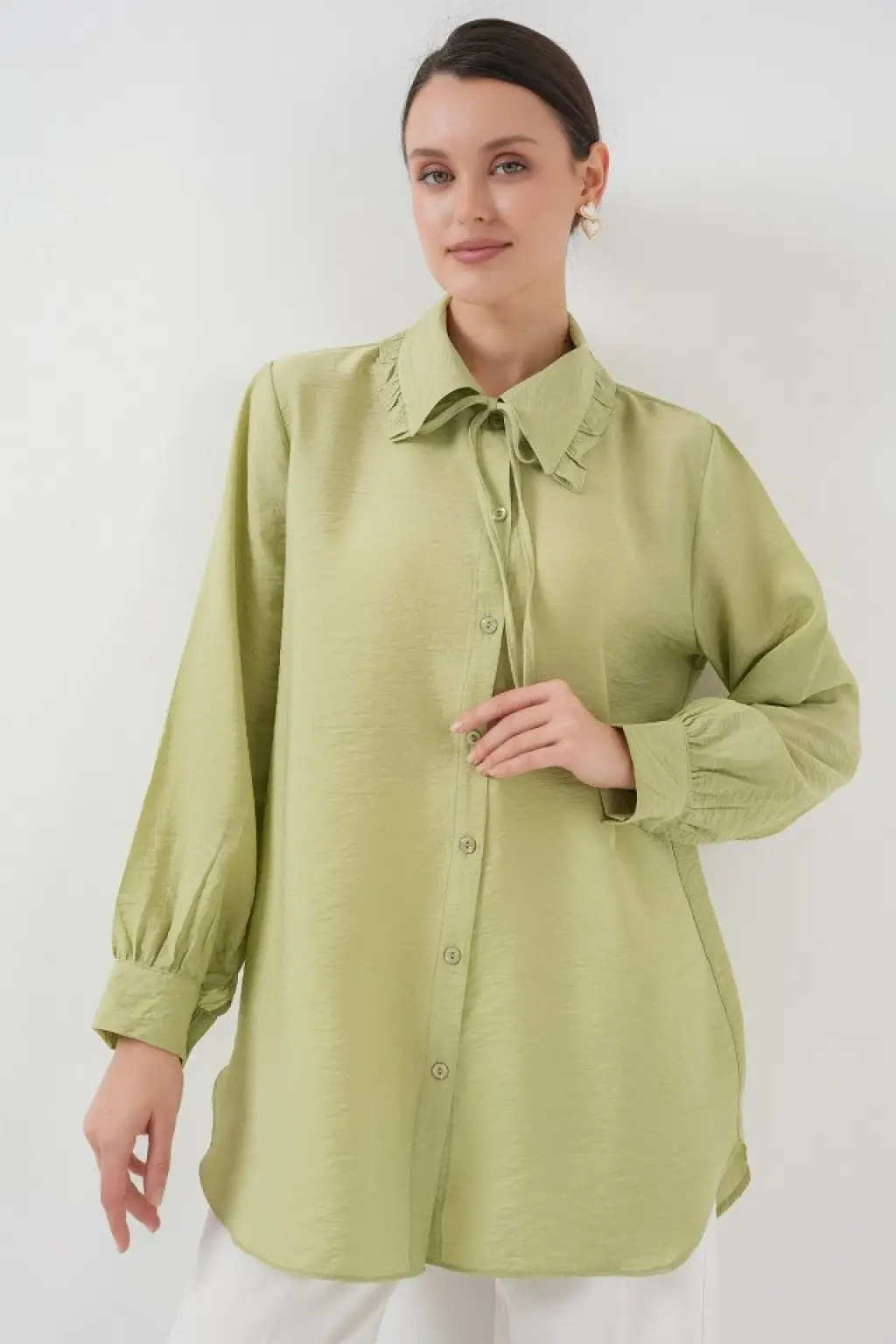 Fırfırlı Uzun Gömlek Tunik 5952 - Çağla