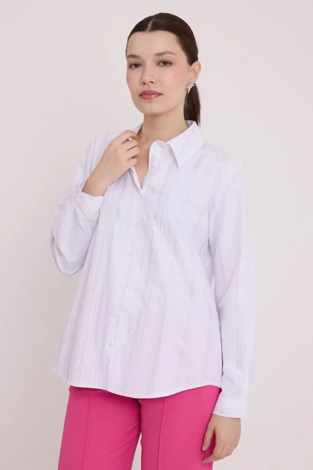 Beyaz Gümüş Varak Desenli Gömlek 20253