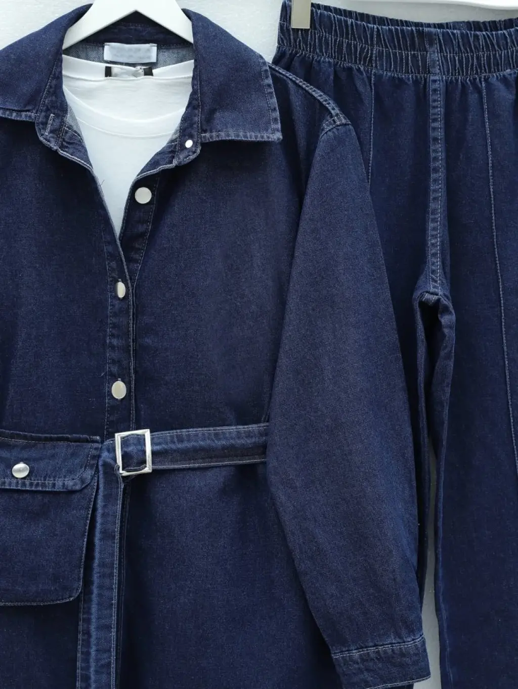 Çanta Cepli Çimalı Pantolonlu Kot Takım -Laci