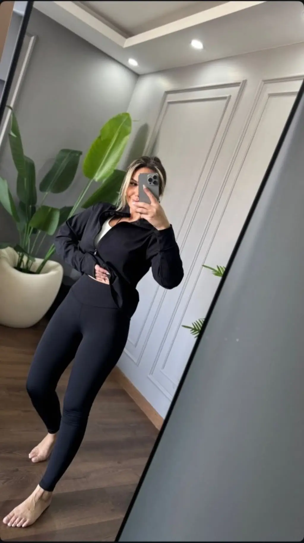 Kadın Full Likralı Ceket Ve Yüksek Bel Tayt Ikili Takim