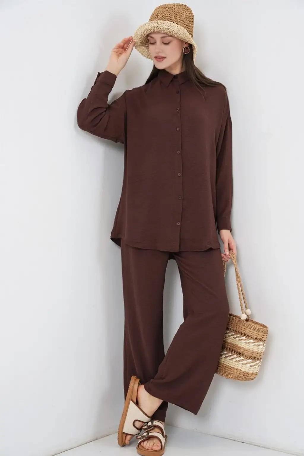 Gömlek Pantolon İkili Takım 30063 - Kahverengi