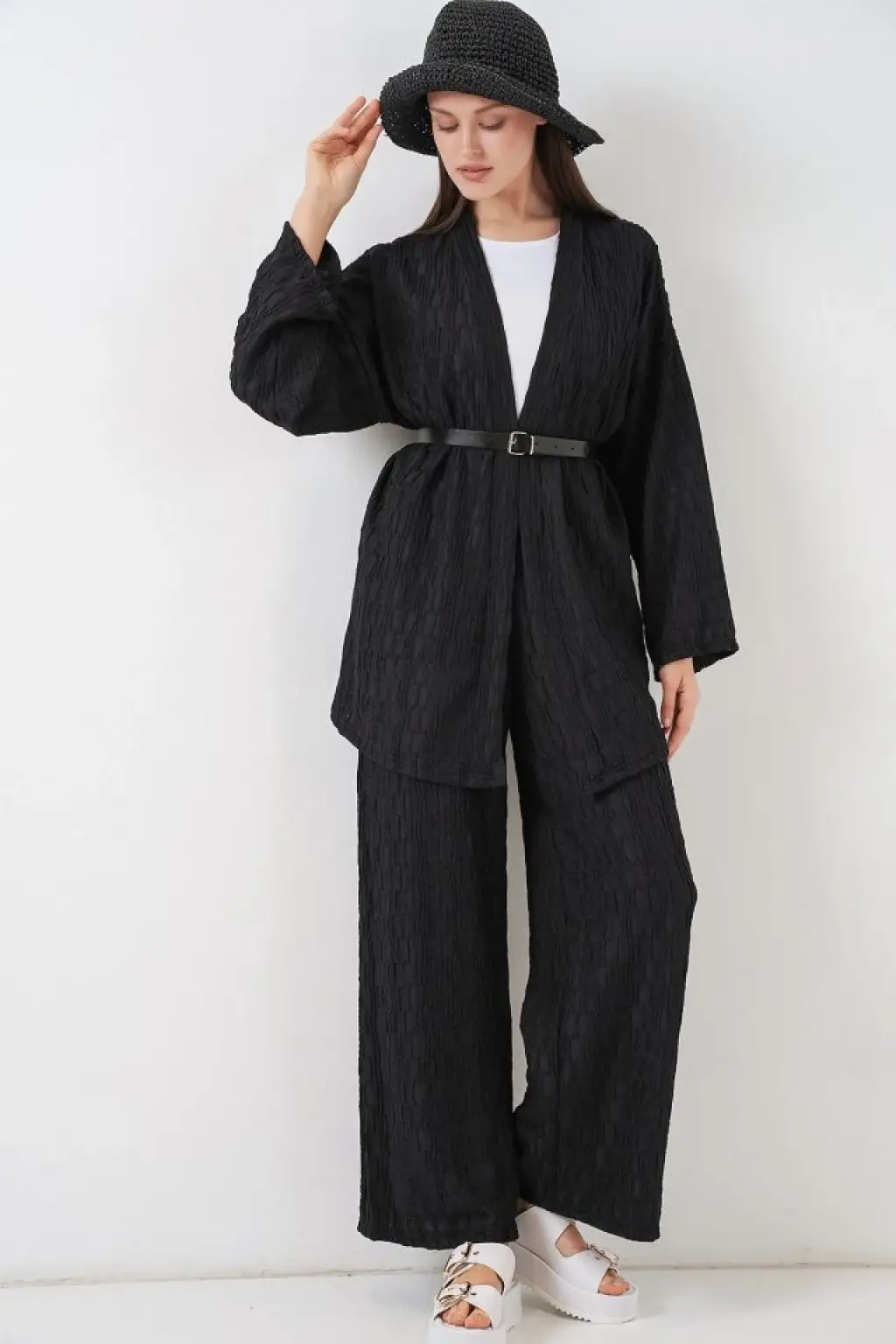 Kimono Pantolon İkili Takım 30078 - Siyah