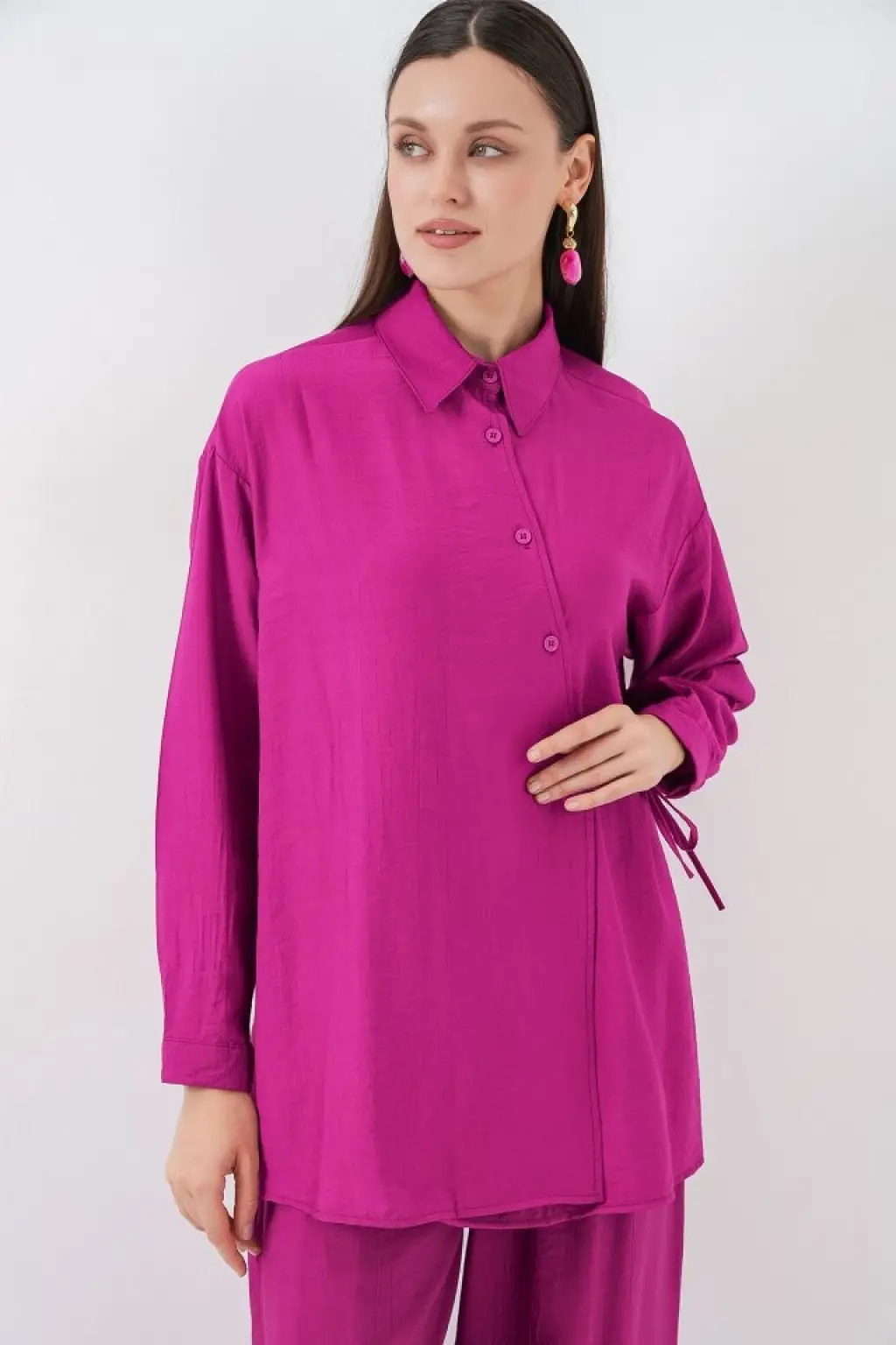 Bağcıklı Tunik Pantolon İkili Takım 6752 - Fuşya