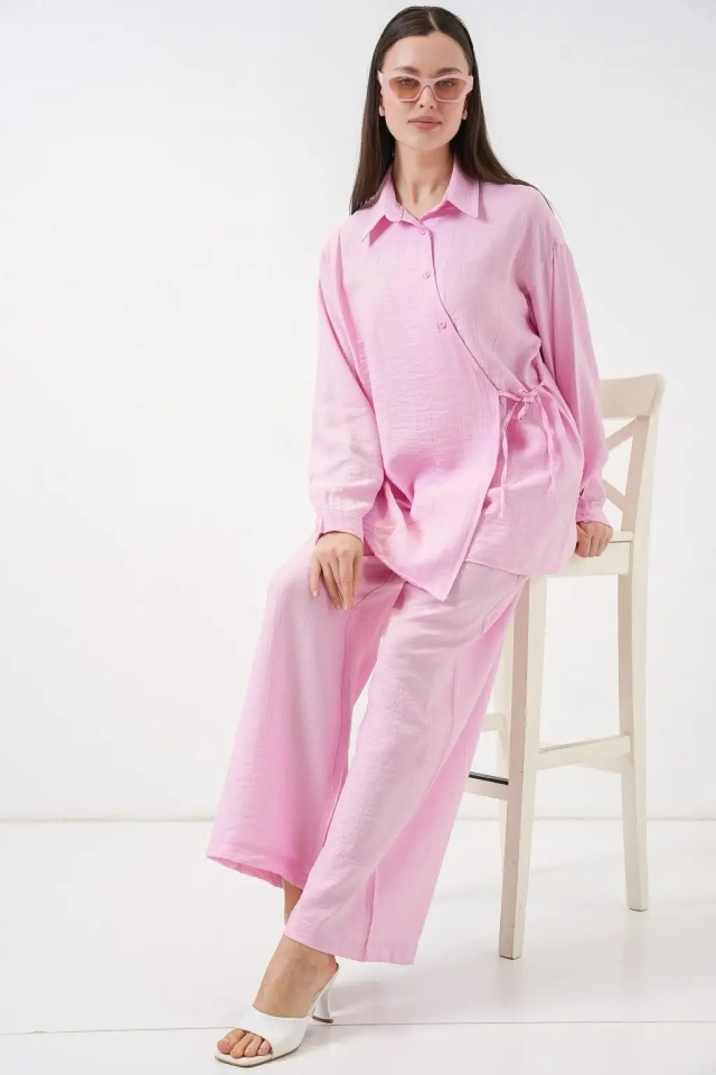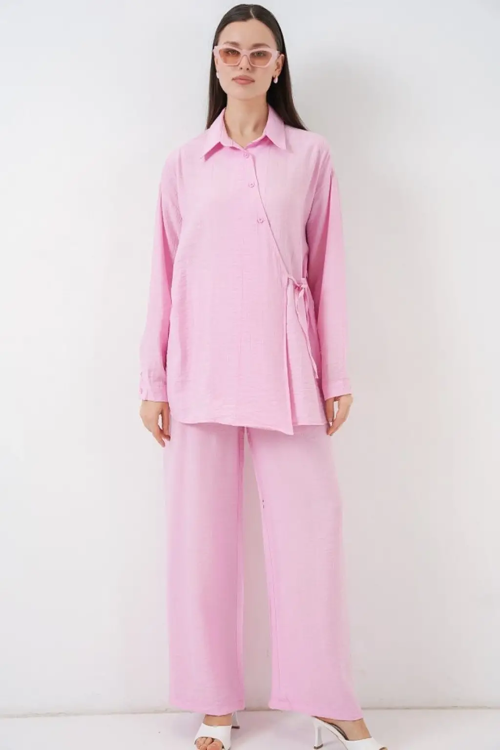 Bağcıklı Tunik Pantolon İkili Takım 6752 - Fuşya