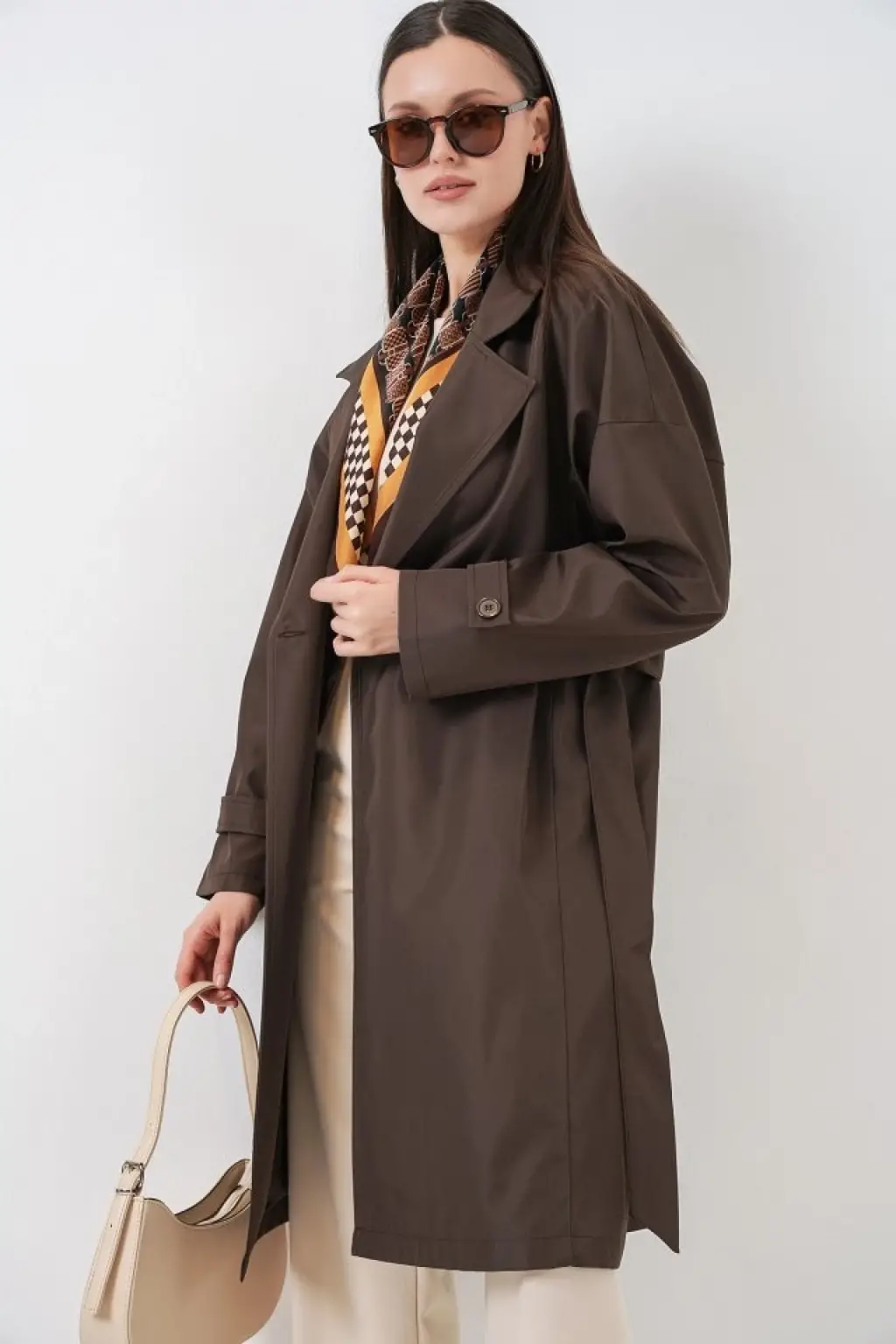 Kruvaze Yaka Trençkot 5987 - Kahverengi