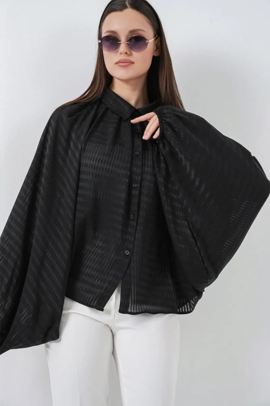 Yarasa Kol Oversize Gömlek 20368 - Siyah