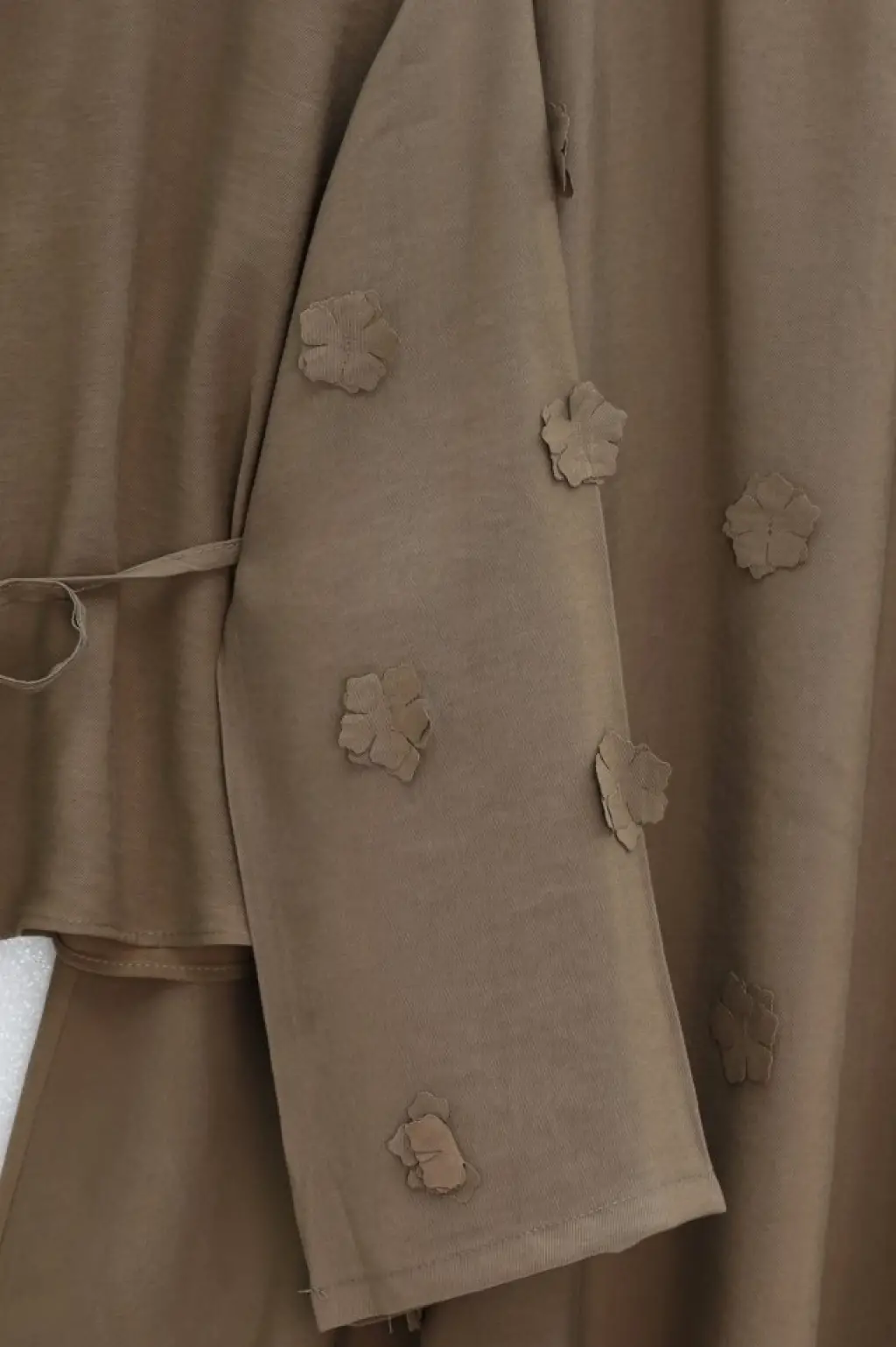 Kolları Ve Eteği Çiçekli Beli Bağcıklı Gömlek Etek İkili Modal Takım -Kahve