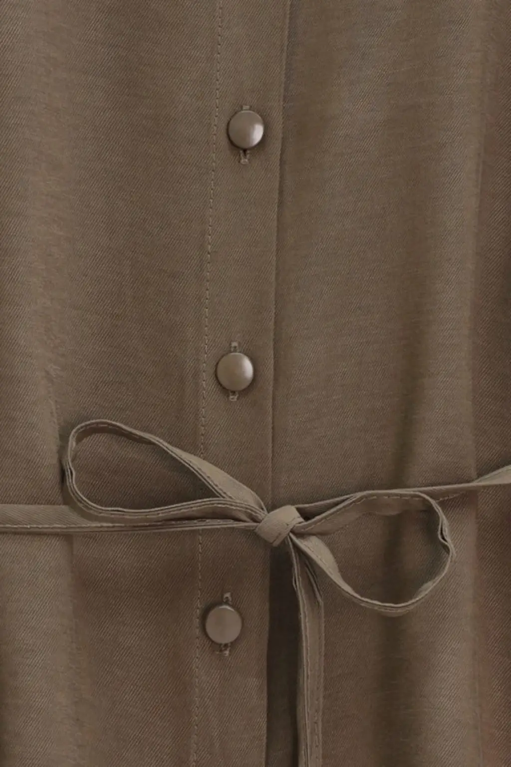 20153 Tek Cepli Oversize Keten Gömlek - A.Haki