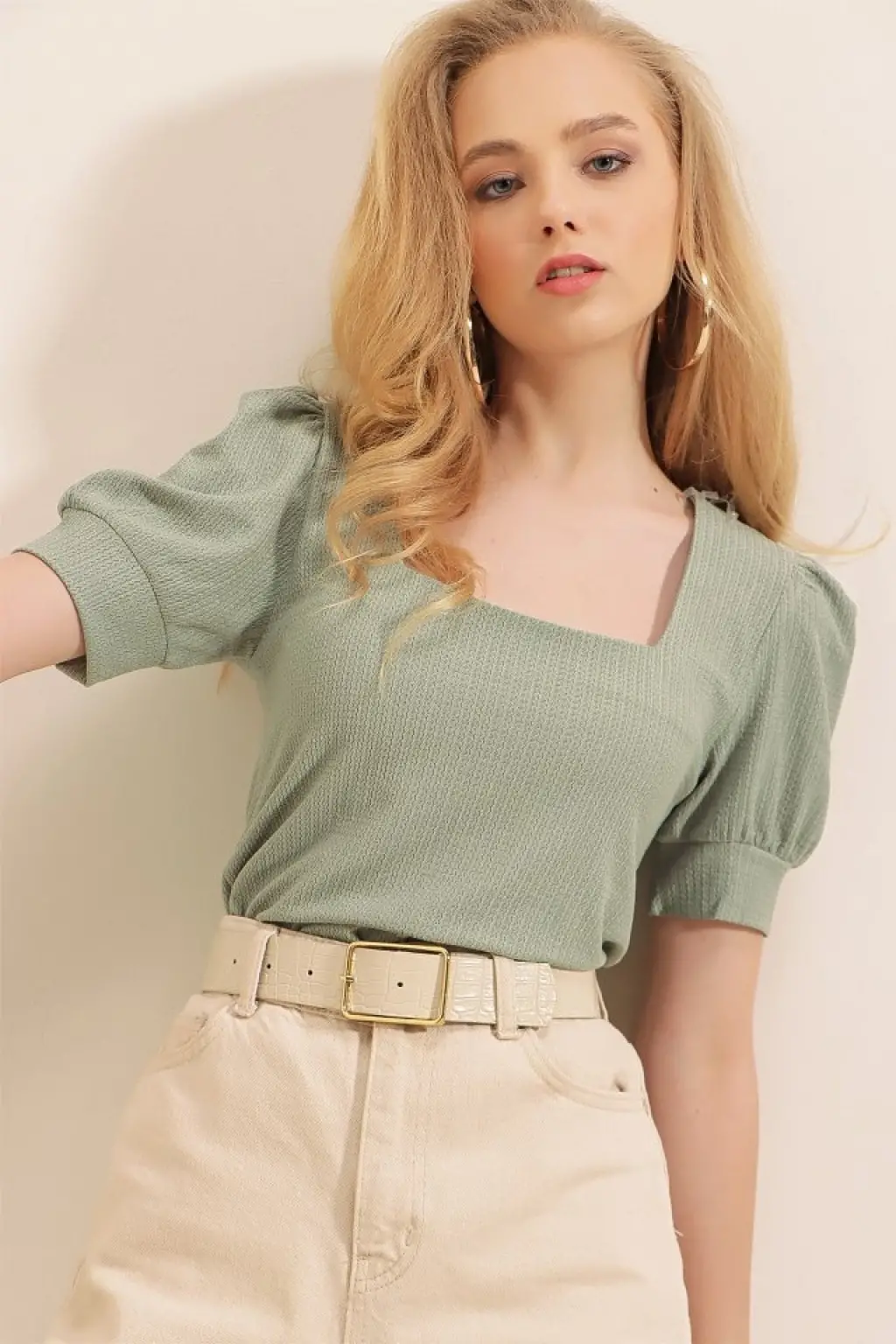 Kruvaze Yaka Kolsuz Bluz 966 - Çağla
