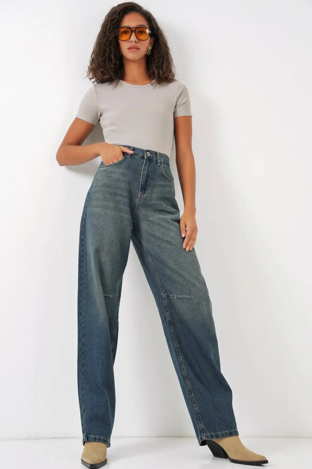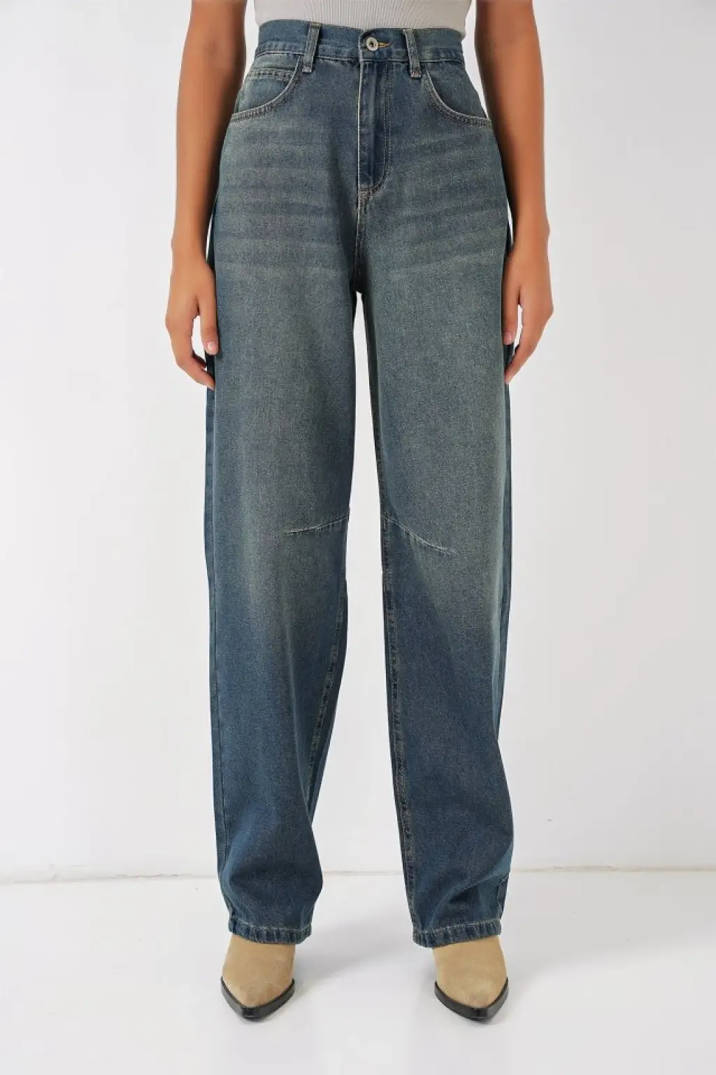 6689 Yüksek Bel Baggy Kot Pantolon - İndigo