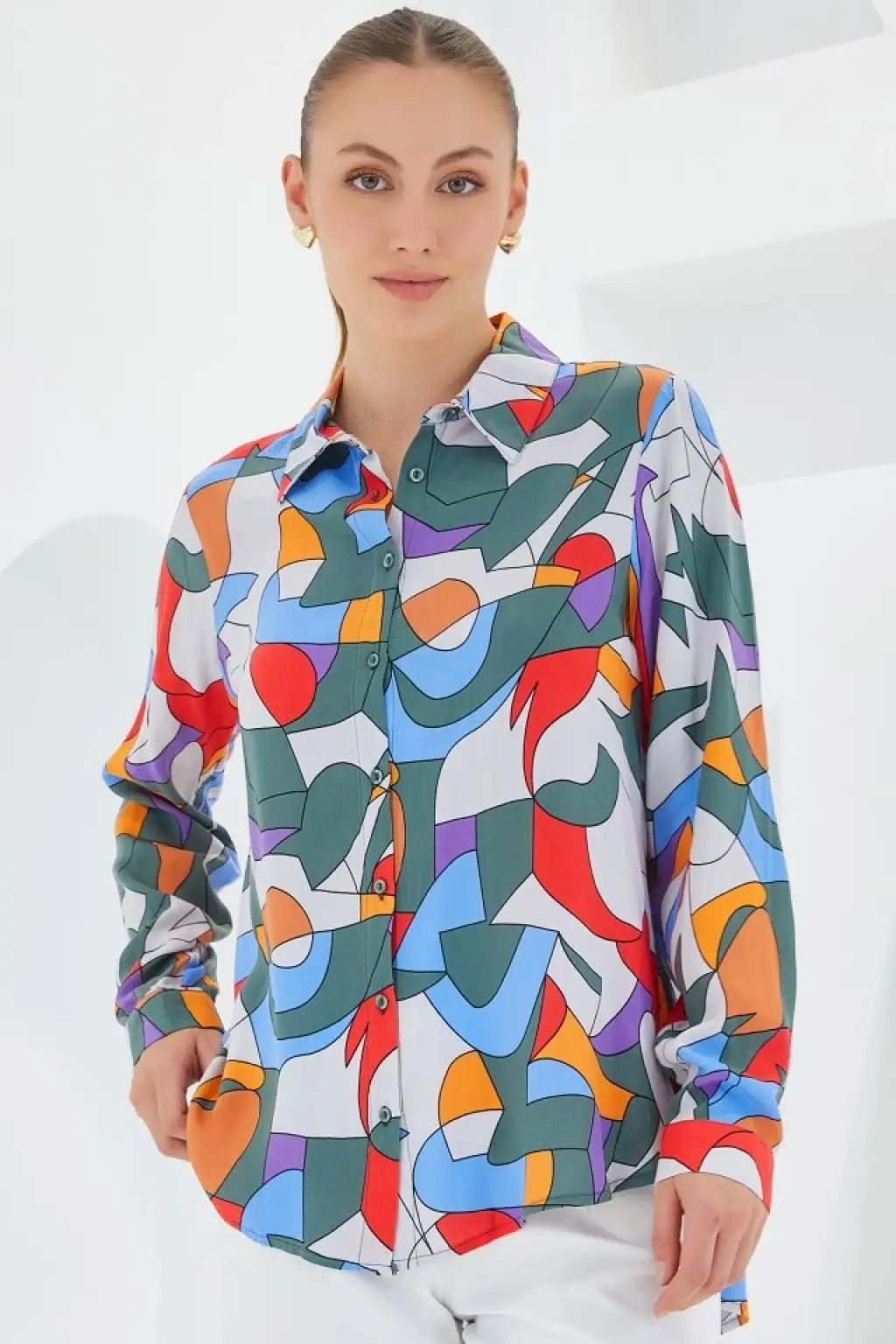 3721 Grafik Desenli Gömlek - E.Haki