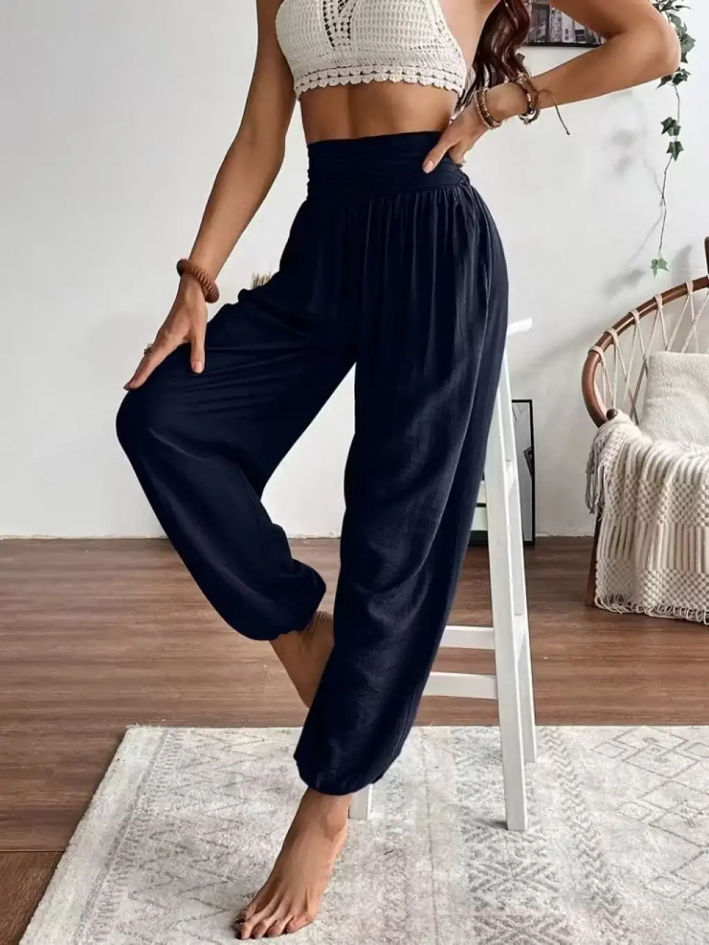 Kadın Yüksek Bel şerit Detaylı Ispanyol Paçalı Dalgıç Pantolon