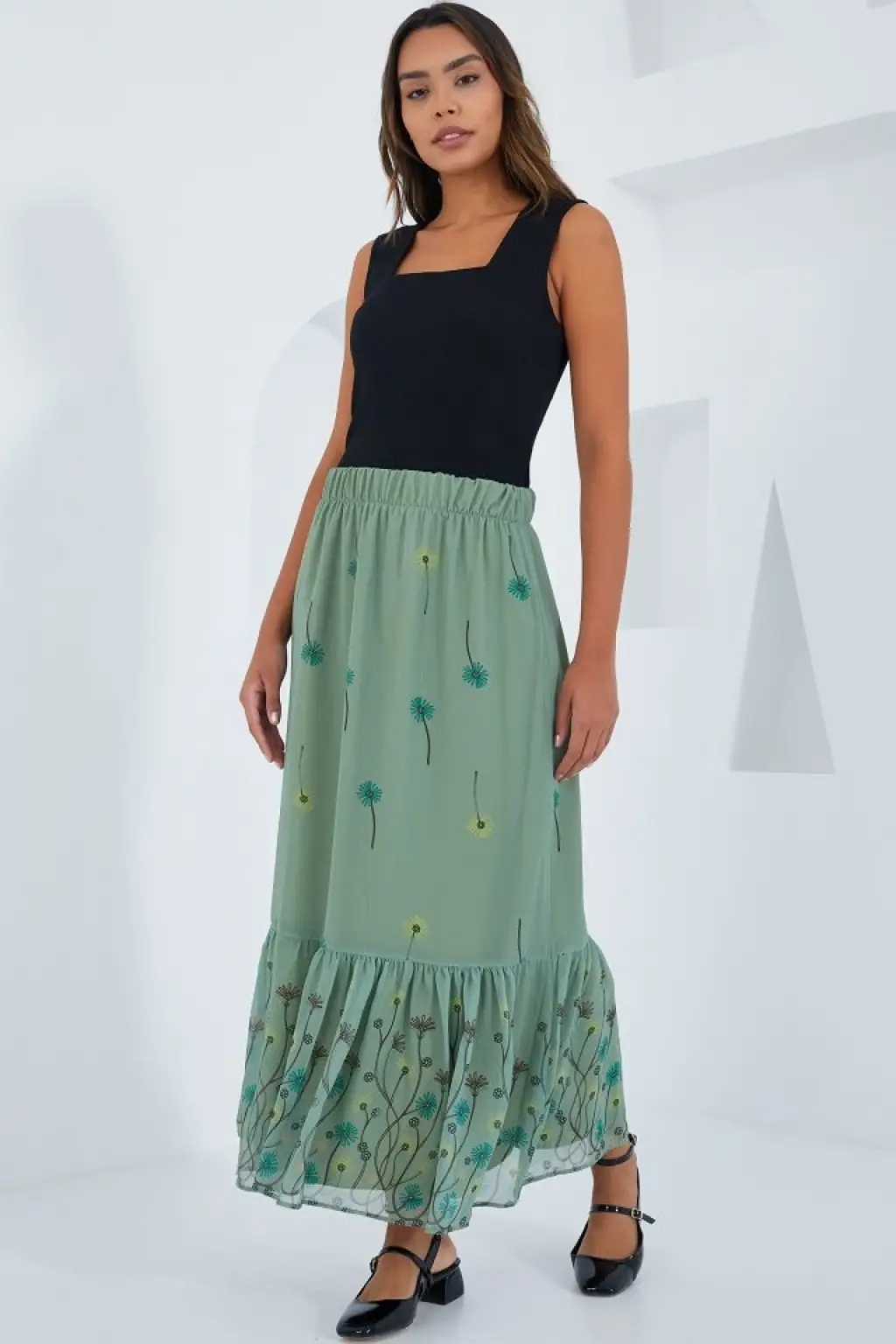 Büzgü Detay Maxi Etek