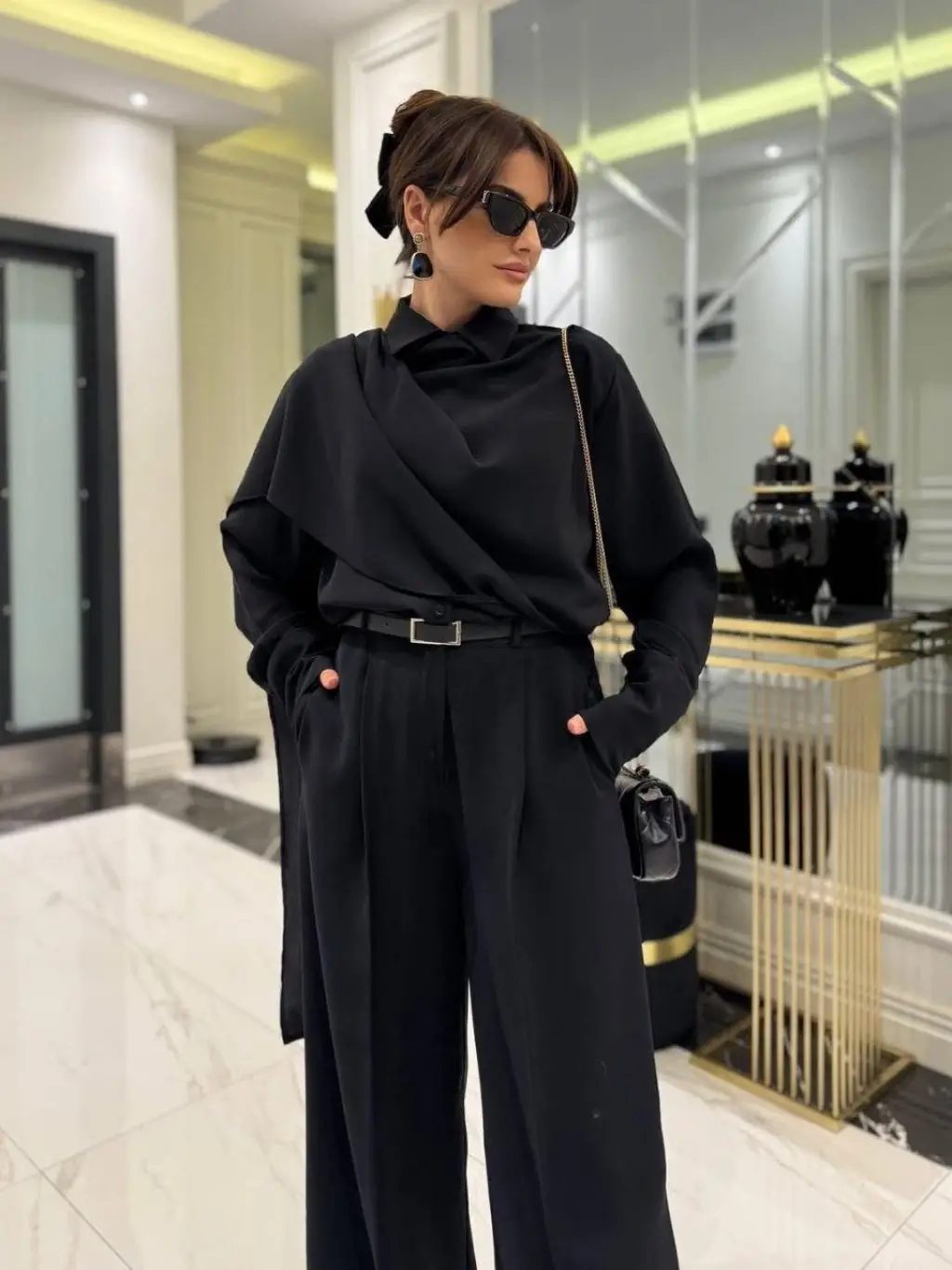 Kadın Uzun Kollu şal Detaylı Bluz Ve Pantolon Ikili Takım