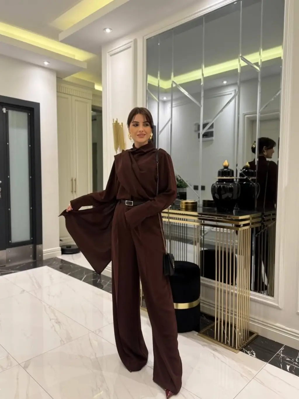Kadın Uzun Kollu şal Detaylı Bluz Ve Pantolon Ikili Takım