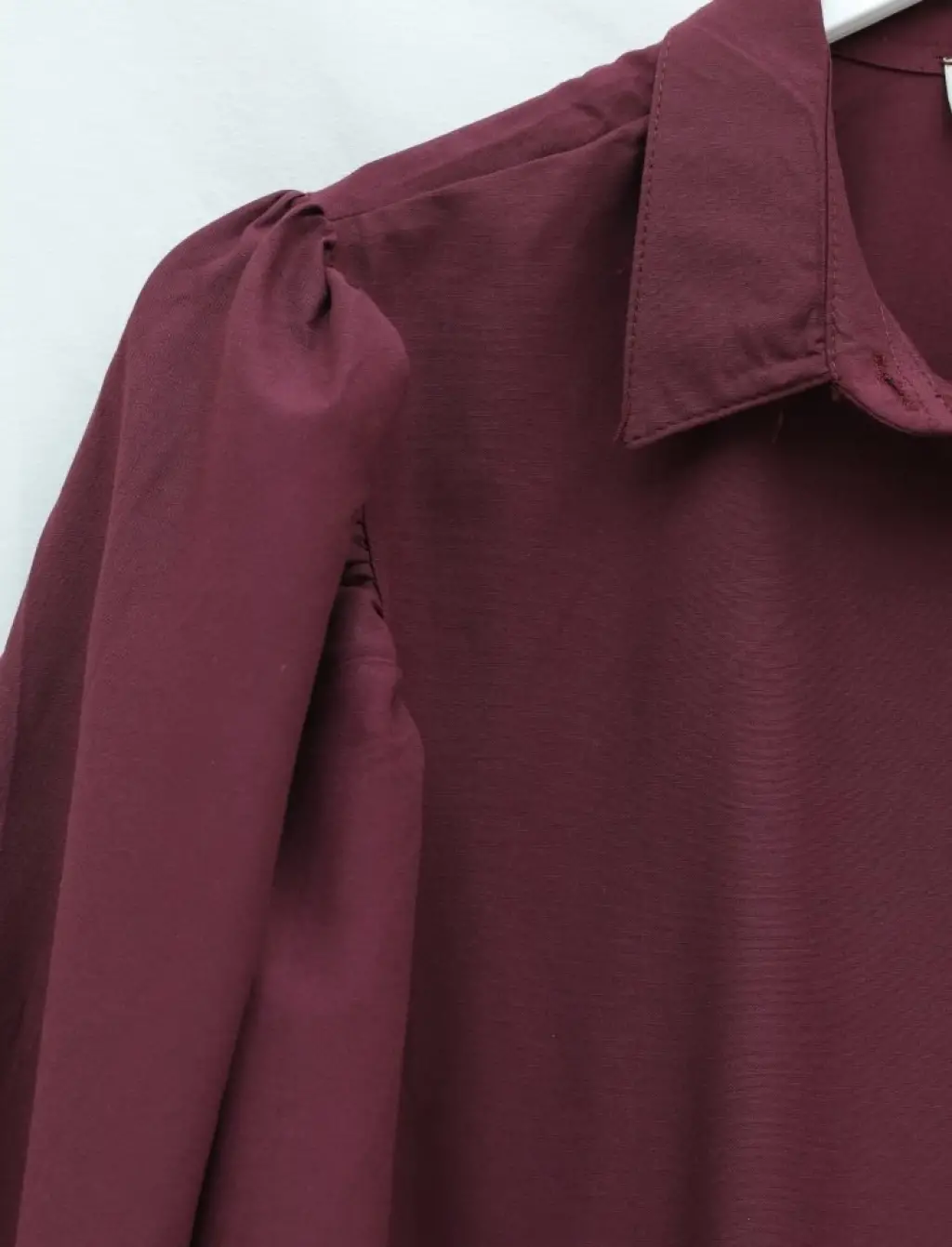 Balon Kol Düğmeli Kısa Poplin Gömlek -Bordo
