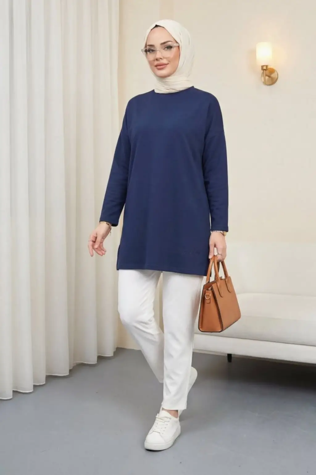Eteği Kalp Detaylı Yırtmaçlı Salaş Penye Tunik -Laci