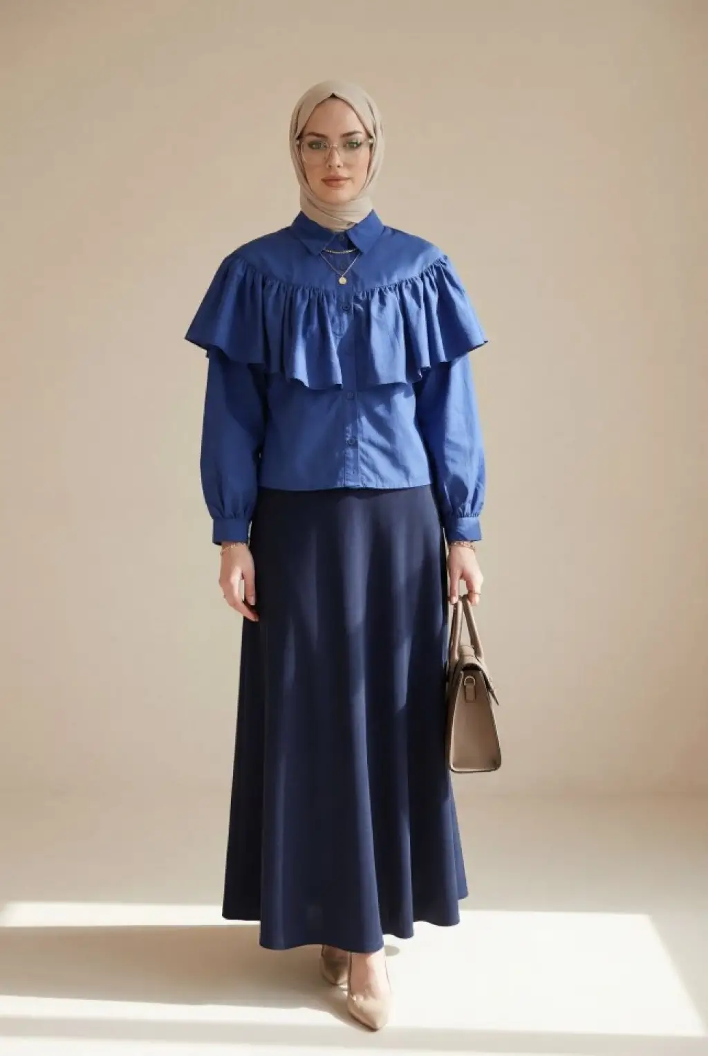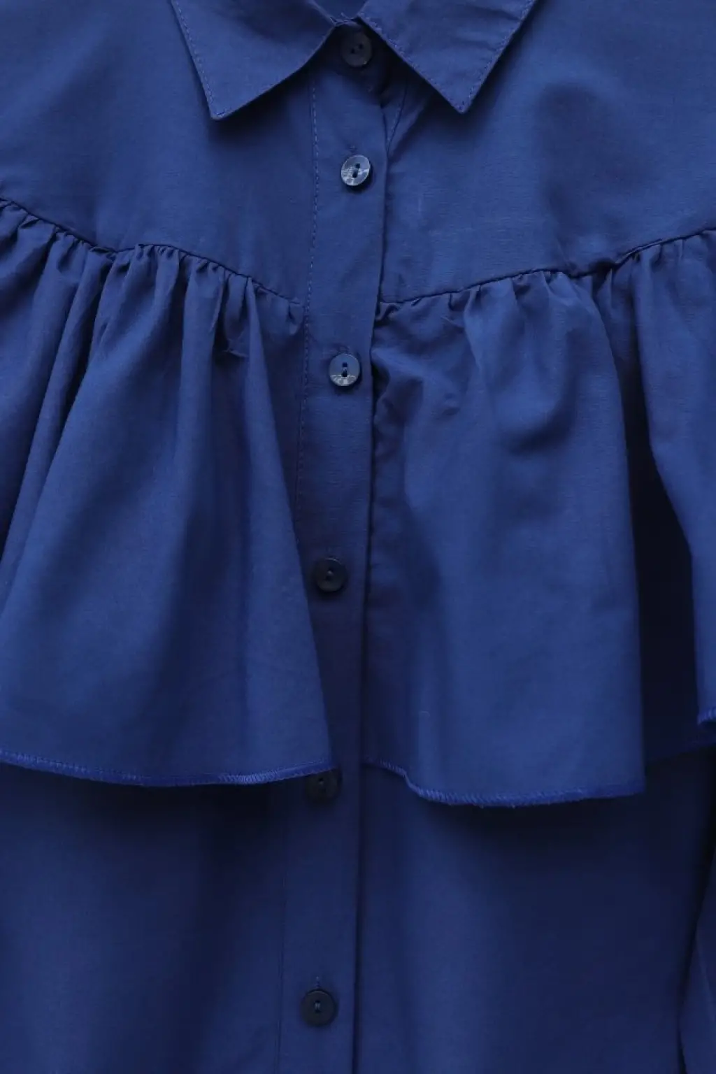 Önü Ve Omuzu Fırfır Detaylı Poplin Gömlek Bluz -Laci